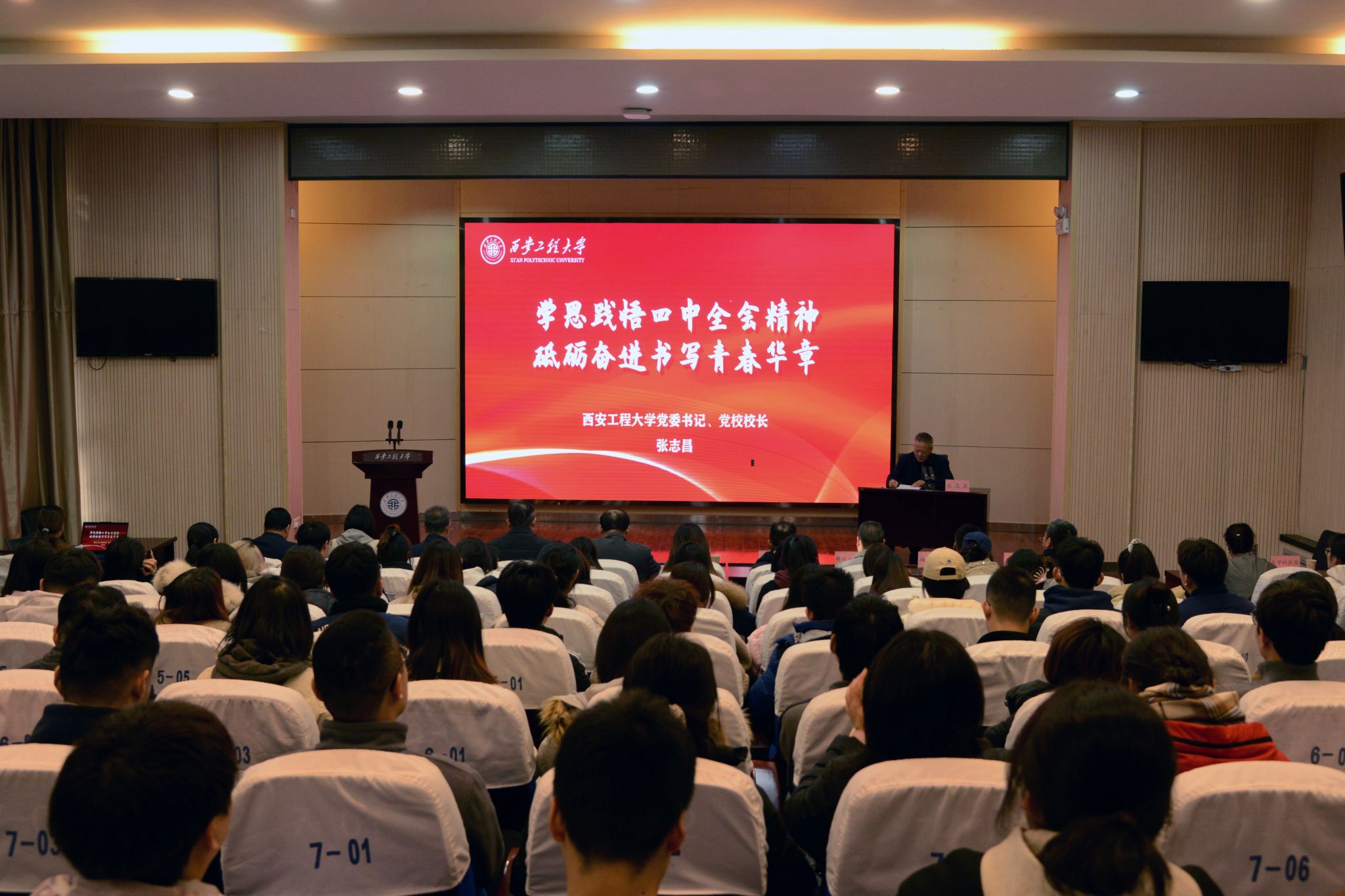 开班式在庄严的国歌声中拉开帷幕。张志昌以《学思践悟党的二十届四中全会精神砥砺奋进书写青春华章》为题讲授专题党课。他强调,学习好贯彻好党的二十届四中全会精神是当前和今后一个时期的一项重大政治任务,全校师生要深入学习把握全会精神,坚持深学、细悟、笃行,做到学思用贯通、知信行统一,从全会精神中汲取磅礴的奋进力量,在新征程上谱写新的篇章。要传承红色信仰,厚植家国情怀。坚持以习近平新时代中国特色社会主义思想为指导,坚定理想信念,传承梦桃精神和姚穆院士教育家、科学家精神,将个人的成长成才融入国家、行业发展的大局,做让党放心、爱国奉献、担当民族复兴大任的时代新人。要担当使命,做新时代强国建设的奋斗者。将“负重奋进、实业报国”的办学传统融入血脉,将“崇真尚美、经纬天下”的大学精神付诸行动,在服务强国建设、民族复兴伟业中挺膺担当!