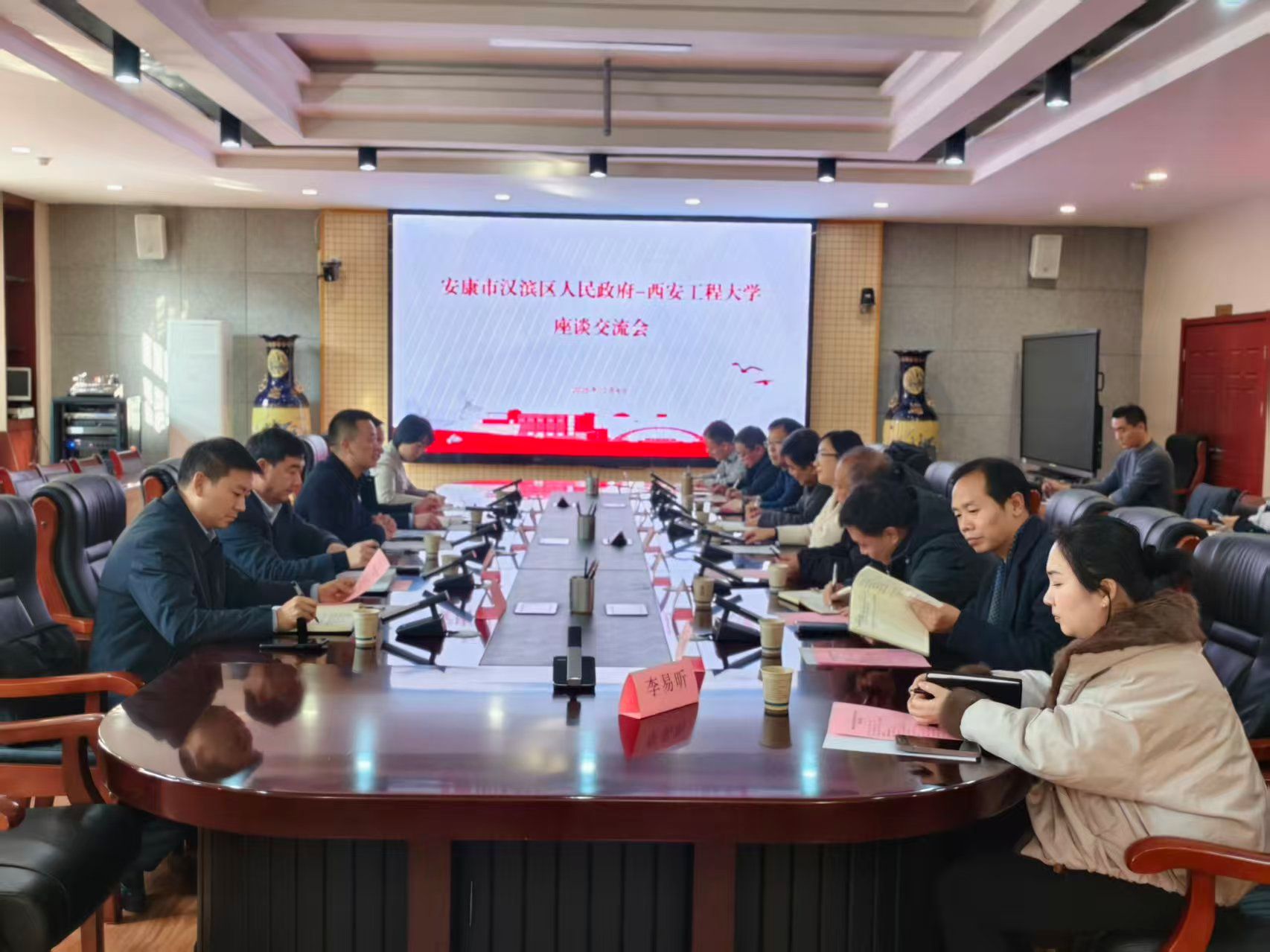12月4日,安康市汉滨区委副书记、区长向诗兵带队来best365官网调研交流,座谈会在金花校区第三会议室召开。副校长夏蔡娟主持座谈会。