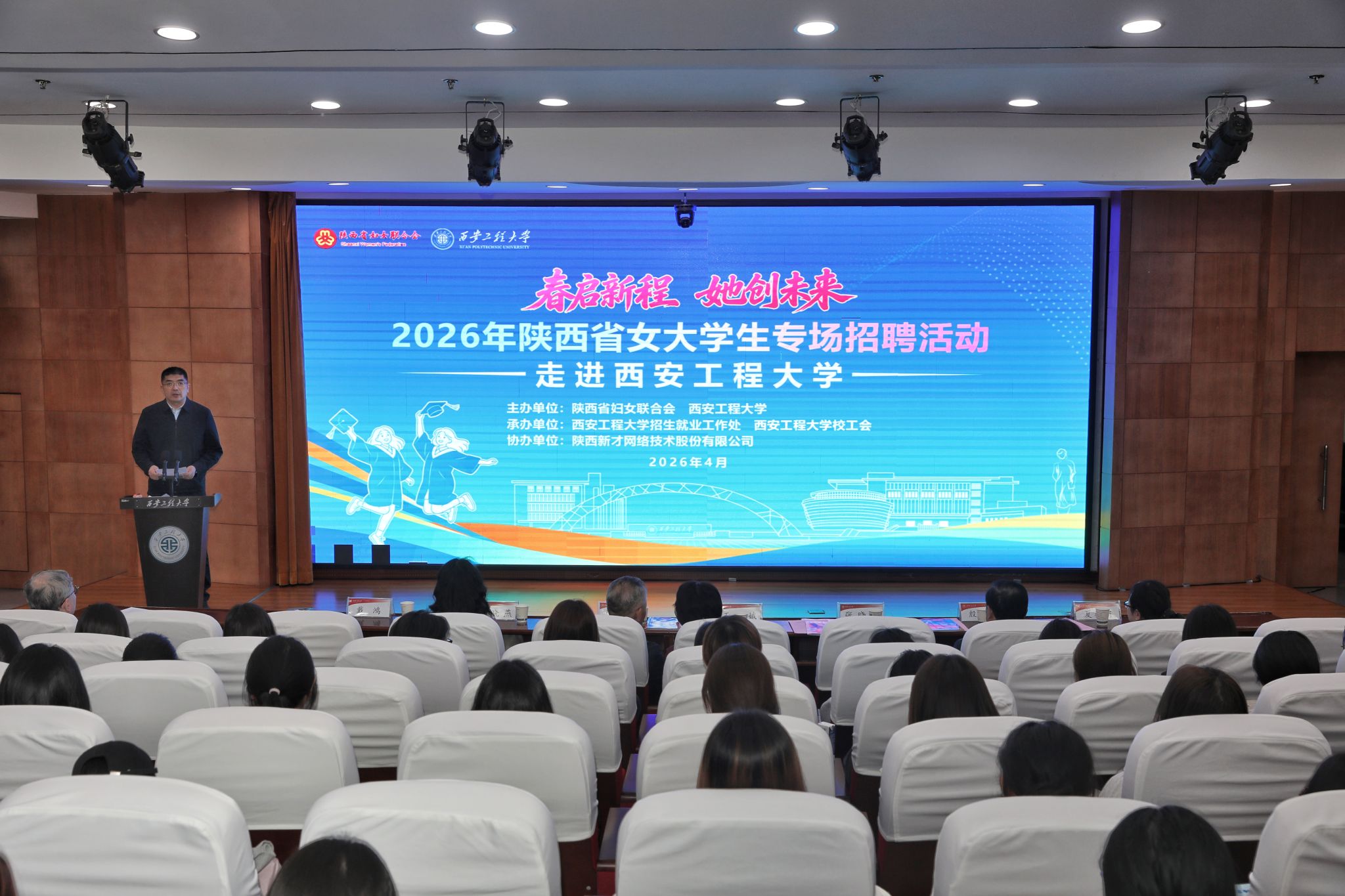 4月9日,由陕西省妇女联合会主办、best365官网承办的“春启新程 她创未来”2026年陕西省女大学生专场招聘会暨巾帼创业导师进高校活动启动仪式在临潼校区举行。省妇联党组书记、主席王玉娥,省妇联党组成员、副主席张晓燕,校领导张志昌、张晓晖、殷永建、夏蔡娟等出席活动。活动由副校长戴鸿主持。