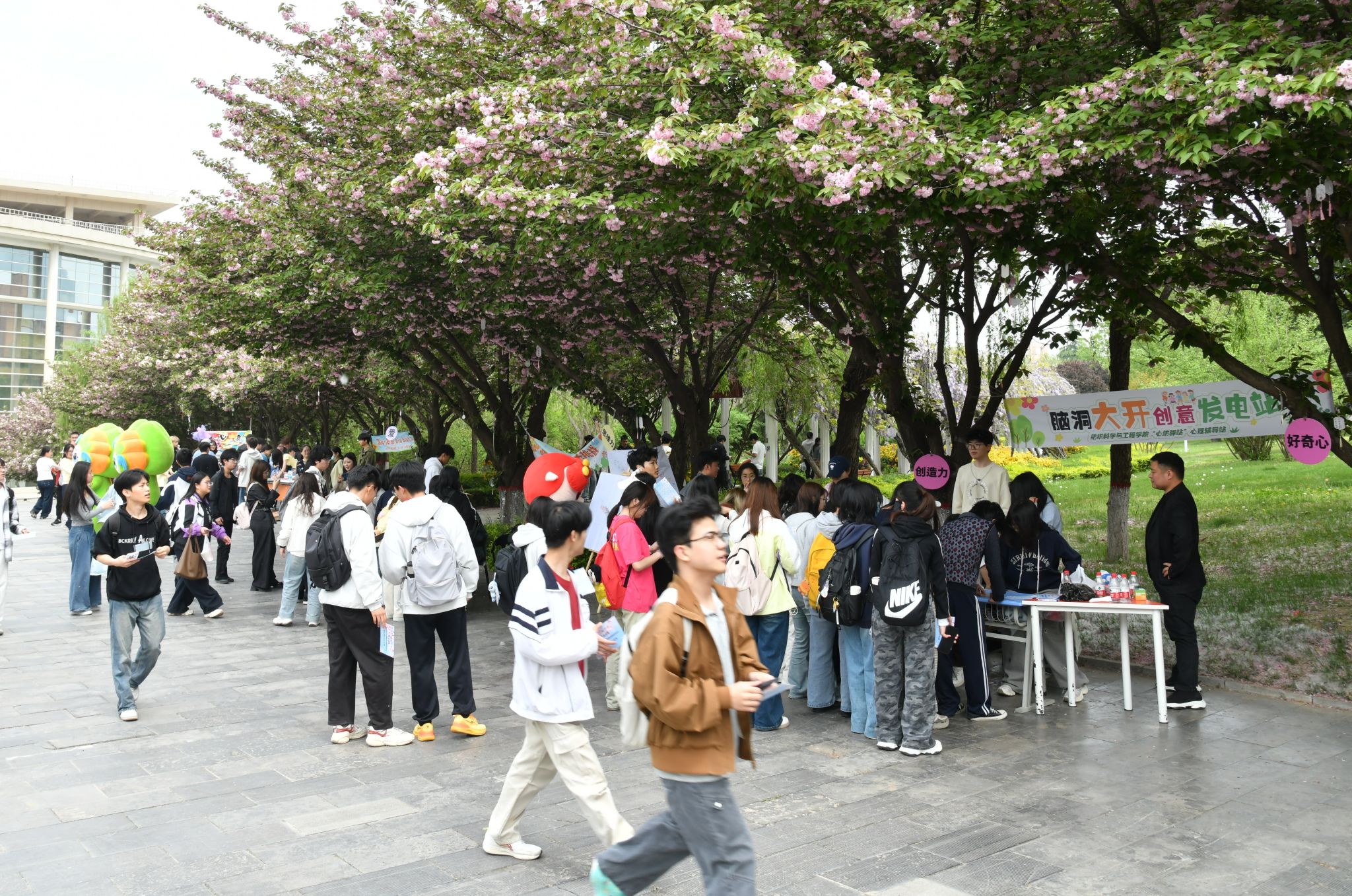 七星大道上,24种积极心理品质的科普展板与创意互动装置错落有致、依次铺展,将抽象的心理学理论术语转化为可视、可触、可感的生动育人场景,让“品格优势”走出书本、走进生活。时值校园樱花烂漫绽放,粉白相间的花海与科普长廊交相辉映,构成一幅赏心悦目的春日画卷,不仅为活动增添了诗意底色,更在无声中提升了学生的积极情绪体验,让美育与心育在自然景致中悄然融合。
