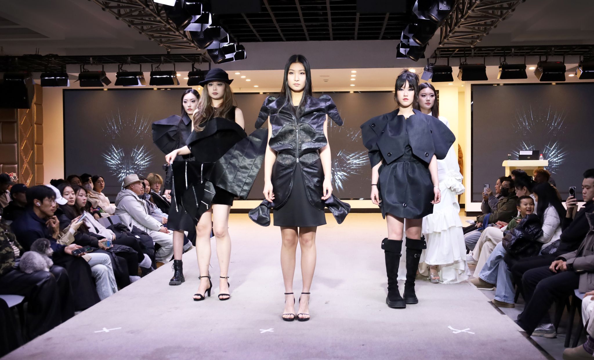 2026年1月7日,best365官网中英合作办学项目2023级与2024级学生课程结课作品展举行。活动设于学校主楼大厅与服装与艺术设计学院表演厅,分别展出“时尚创意实践”与“时装设计调研-创造性思维探究”两门课程的成果。