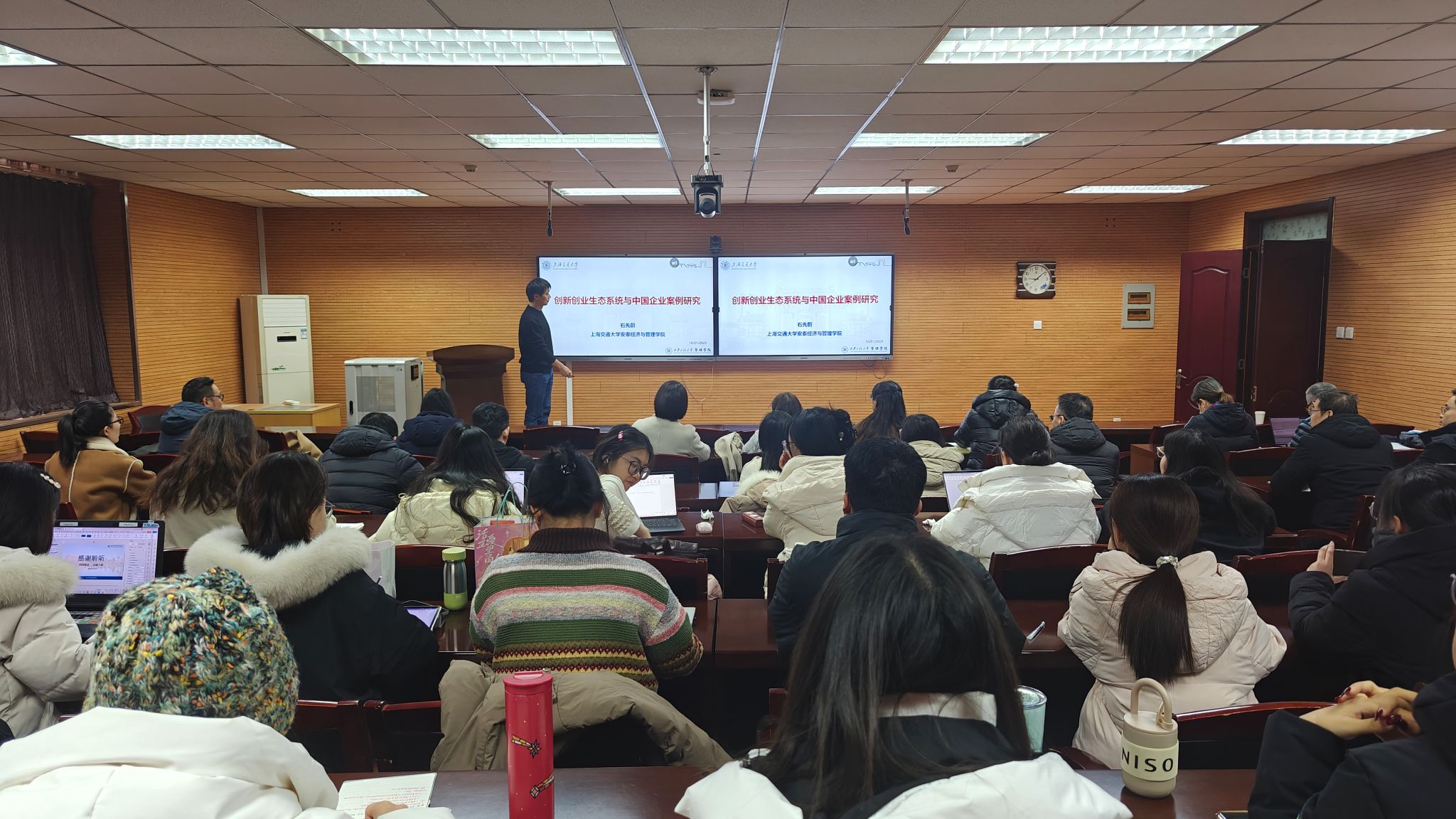 1月18日,管理学院邀请上海交通大学安泰经济与管理学院石先蔚副教授来校进行学术交流,石先蔚副教授作了“创新创业生态系统与中国企业案例研究”的学术报告。报告会由管理学院副院长王渊主持,学院学术骨干、青年教师及部分研究生参加了报告会。