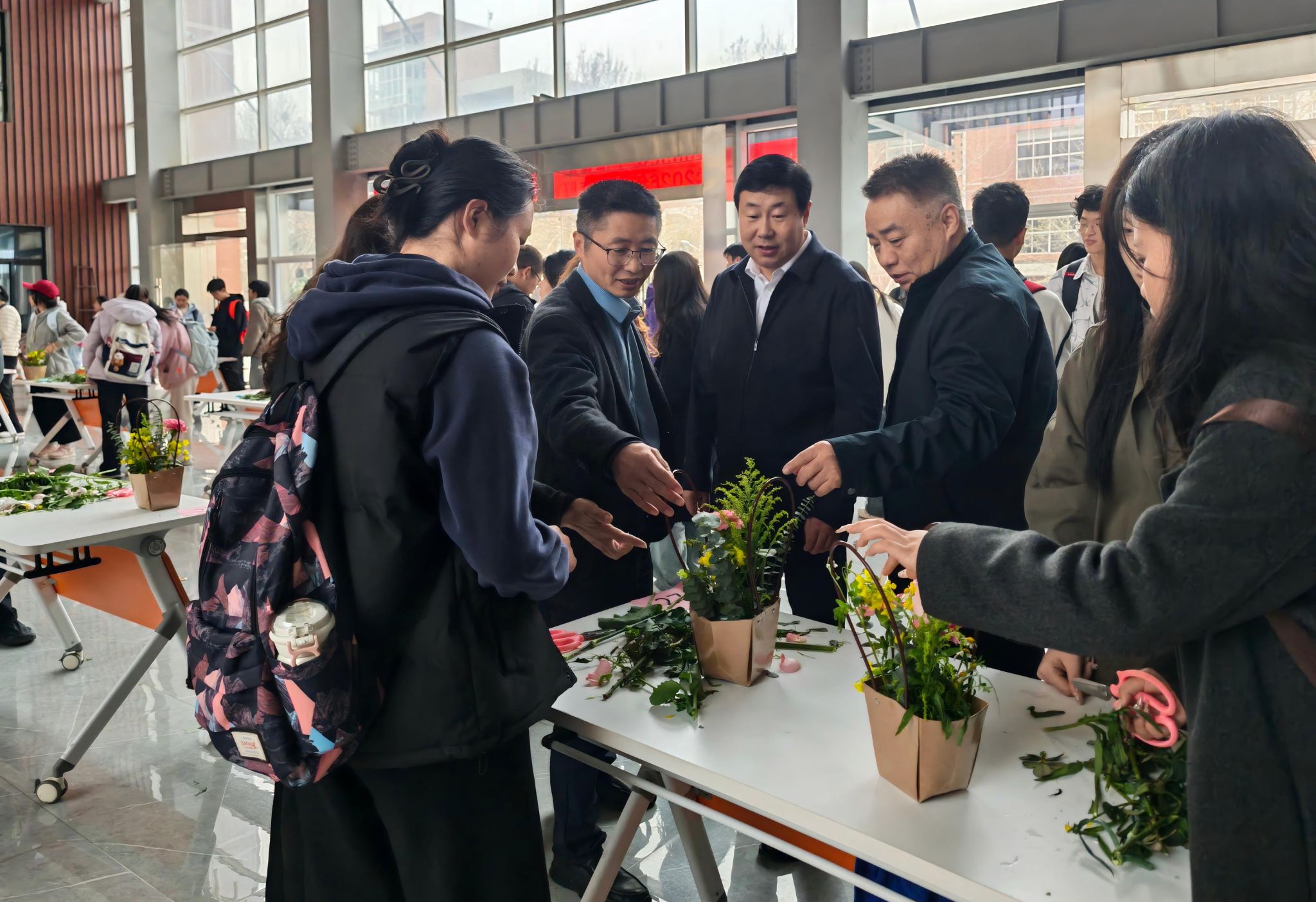 3月25日,best365官网2026年心理育人宣传季实践活动启动仪式暨第二届花艺团体心理育人活动在临潼校区笃行楼一楼大厅举行。校党委副书记殷永建深入现场参加活动交流。本次活动由党委学生工作部主办,城市规划与市政工程学院承办,旨在通过花艺体验与心理育人相结合的方式,引导学生关注心理健康,培育积极心态。全校百余名师生共同参与了活动。