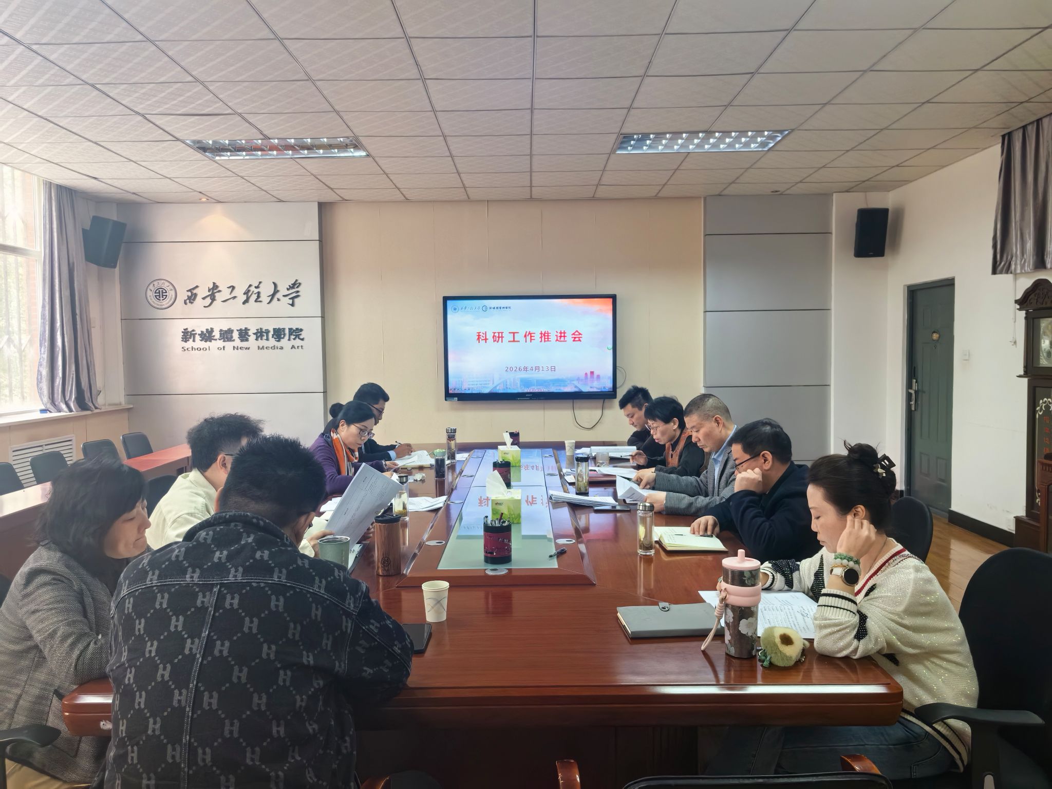 4月13日,新媒体艺术学院在金花校区召开2026年科研工作推进会。学院院长丛红艳主持会议,院领导班子成员、各系(中心、办)主任参加会议。