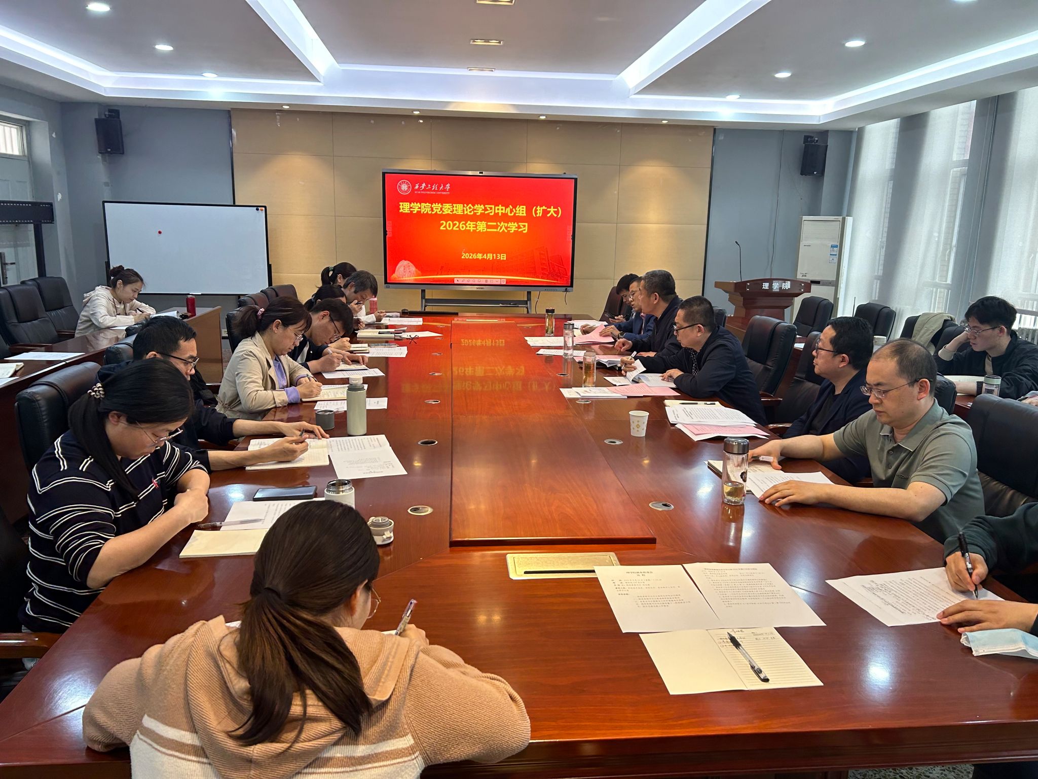 4月13日,理学院党委理论学习中心组召开2026年第二次集体学习(扩大)会。学院党委理论学习中心组成员、各系部主任、各党支部书记参加会议。会议由院党委副书记刘玉森主持。