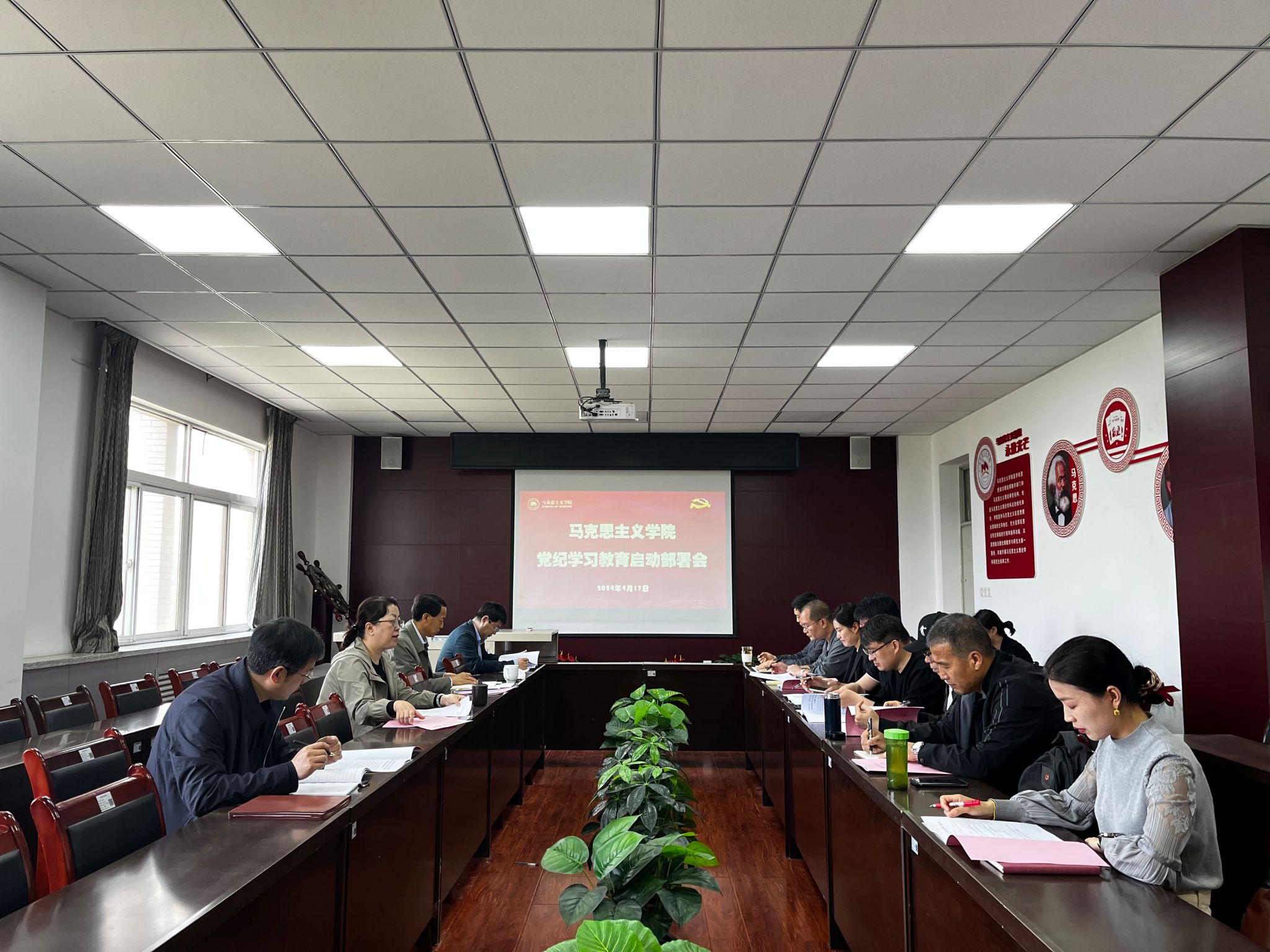 为深入学习贯彻习近平总书记关于党纪学习教育的重要讲话和重要指示精神,4月17日上午,马克思主义学院党委召开党纪学习教育启动部署会暨党委理论学习中心组学习(扩大)会,学院党委委员、班子成员、各党支部书记参加了会议。会议由学院党委书记杨永革主持。