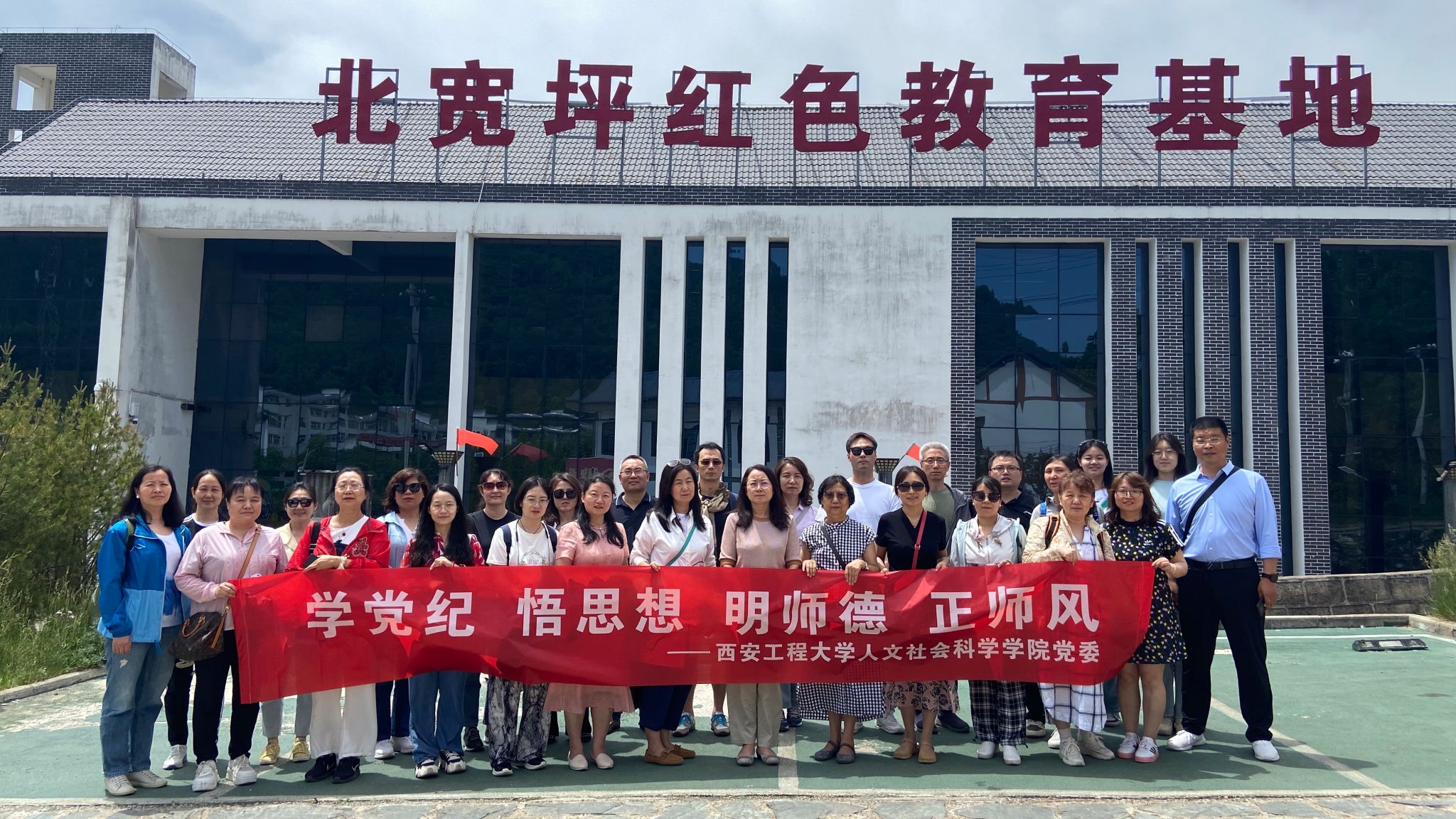 为推动党纪学习教育走深走实,学深悟透习近平新时代中国特色社会主义思想,进一步加强师德师风建设,5月18日,人文社会科学学院党委组织20余名党员教师赴商州北宽坪红色教育基地开展“学党纪悟思想明师德正师风”党纪学习教育主题党日活动暨师德师风教育活动。