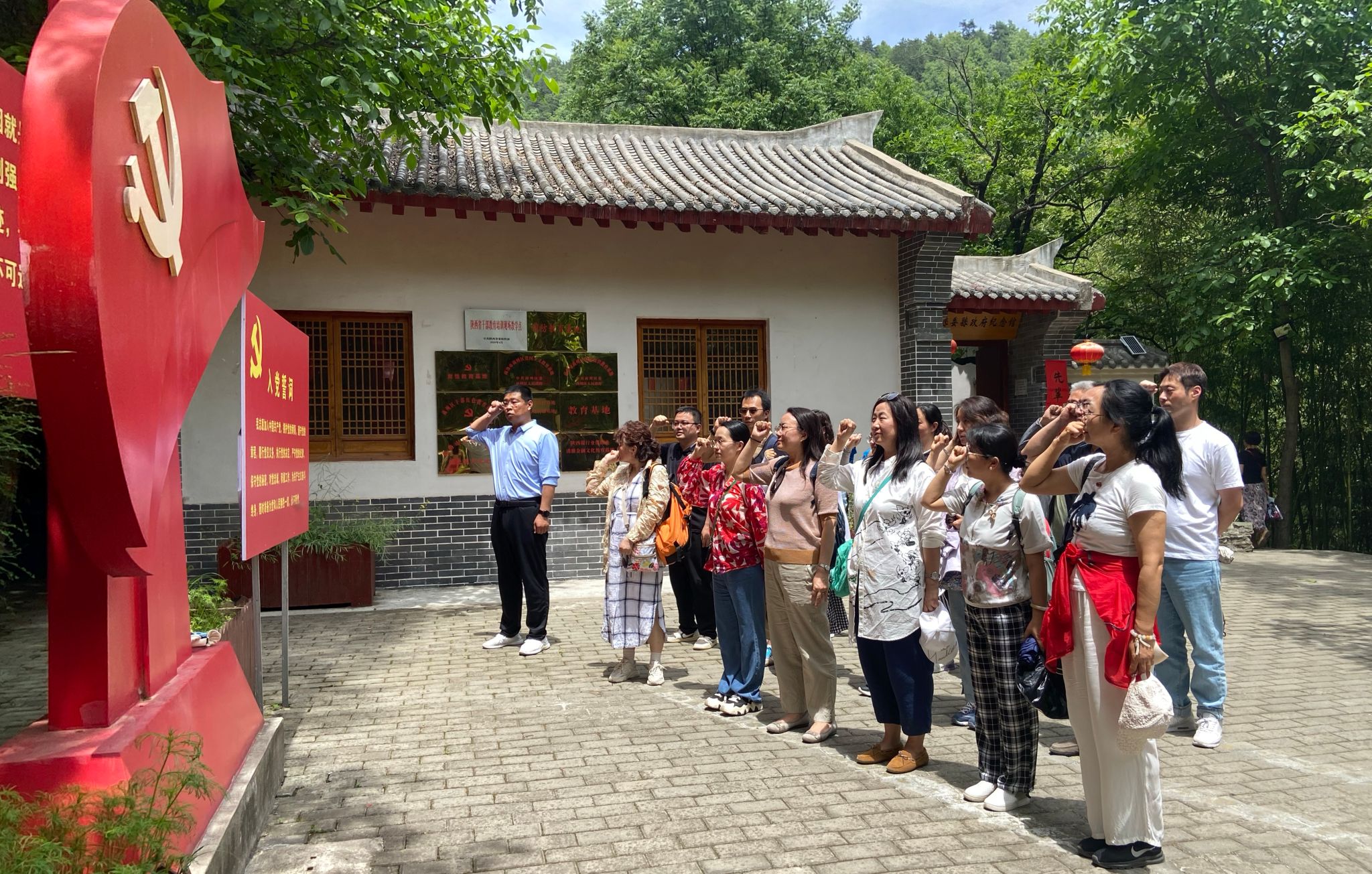 随后,大家沿着缅怀路径参观了中共商洛县委县政府旧址纪念馆,讲解员饱满激情地详细讲述了中共商洛县委县政府成立前后那段激动人心的红色历史。全体党员面向党旗,在学院党委副书记赵立涛的带领下,重温入党誓词,追忆入党初心。