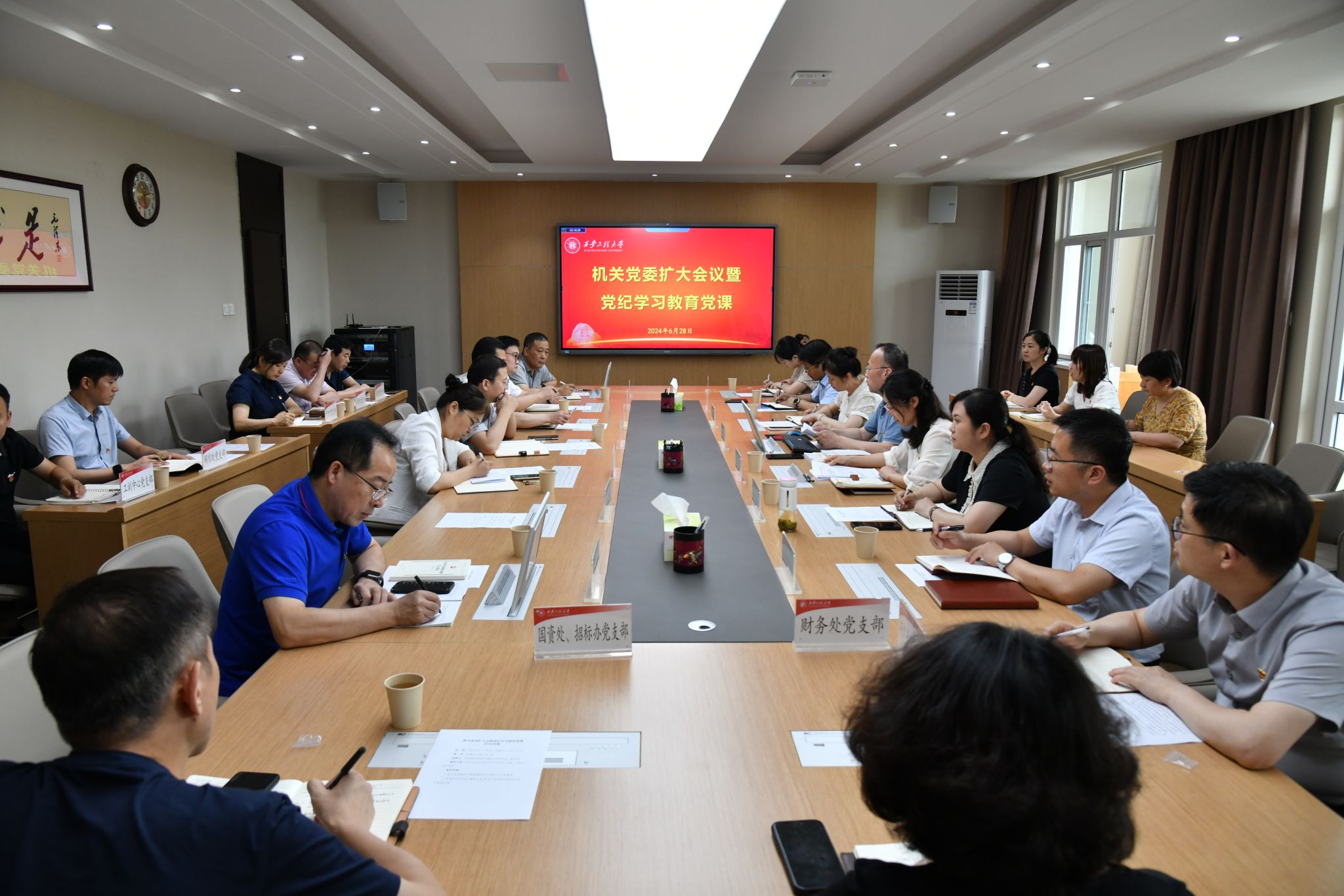 为庆祝中国共产党成立103周年,切实推动党纪学习教育走深走实,6月28日,在“七一”来临之际,best365官网在临潼校区行政楼第三会议室召开机关党委扩大会议暨党纪学习教育党课,机关党委所属22个党支部书记、机关党委委员和组织部全体干部参加,会议由组织部部长兼机关党委书记黄海峙主持。