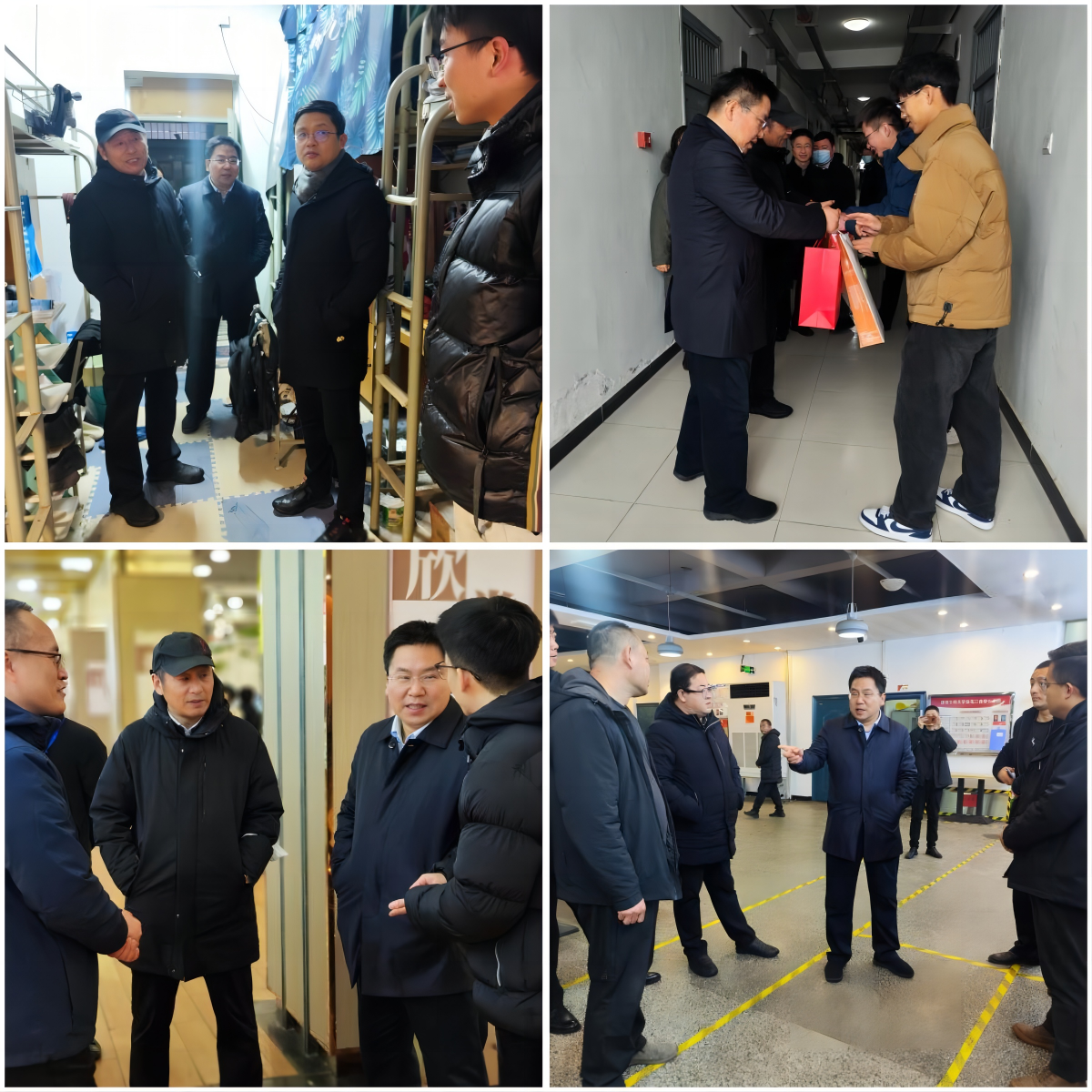 1月15日全天,由校领导井浩、辛永昌带队,校稳定安全工作委员会“一办六组”成员单位组成的工作组分别在两校区各学院和部分重点要害部位开展督查检查。在临潼校区,检查组先后来到文体馆、环化学院、城市学院、计算机学院、机电学院、电信学院、理学院和工训中心,认真检查各单位寒假期间值班安排和实验室、场地使用管理情况,校领导详细询问了各学院寒假留校研究生和延迟返乡学生情况,强调要进一步加强实验室安全管理,严格落实导师责任制和辅导员值班值守,加强对学生的关心关爱,充实留校学生的寒假生活,畅通学生表达诉求的通道,全心全意解决学生的急难愁盼。随后检查组来到锅炉房、学生宿舍和学生食堂,检查消防安全管理、动力运行、宿舍安全、食品卫生等情况,校领导着重了解寒假期间校园供暖、食堂餐品供应情况,同时强调,近日西安雨雪天气较多,降温幅度较大,要进一步加强供暖和餐饮保障,让学生感受到来自学校的“温暖”。