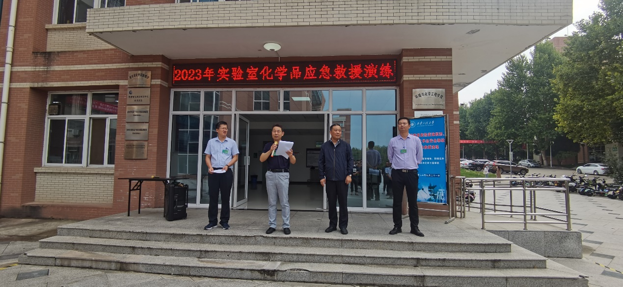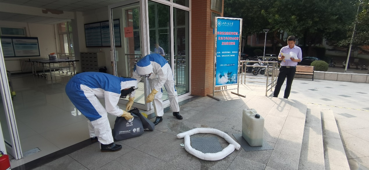 为贯彻落实《高校实验室安全规范》《best365中国官方网站2023实验室检查工作实施方案》,提高师生应对突发实验室安全事件及应急处置能力,9月21日best365官网在临潼校区环境与化学工程学院举行 “2023年实验室安全事故应急救援演练”活动。本次活动由实验室管理处主办,环境与化学工程学院承办,西安安备思软件有限公司协办。实验室管理处处长高飞、副处长刘许、环境与化学工程学院党委书记胡西民、院长武占省、实验室管理处工作人员、西安安备思软件有限公司工作人员以及城市规划与市政工程学院、材料工程学院、理学院的部分师生参加活动。