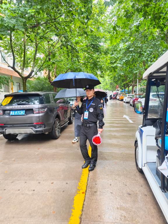 迎新工作期间,突如其来的大雨给安保工作带来更多压力,全体保卫干部和安保队员起早贪黑,不叫苦不叫累,坚守岗位挺殷担当。近三日累计进校机动车辆5600余辆,特别是迎新首日临潼校区新生报到扎堆致使主干道拥堵,保卫干部、交通民警、安保队员齐抓共管,精准发力,顶着风雨疏导来往车辆,为高峰期校内干道保畅促通提供有力保障。