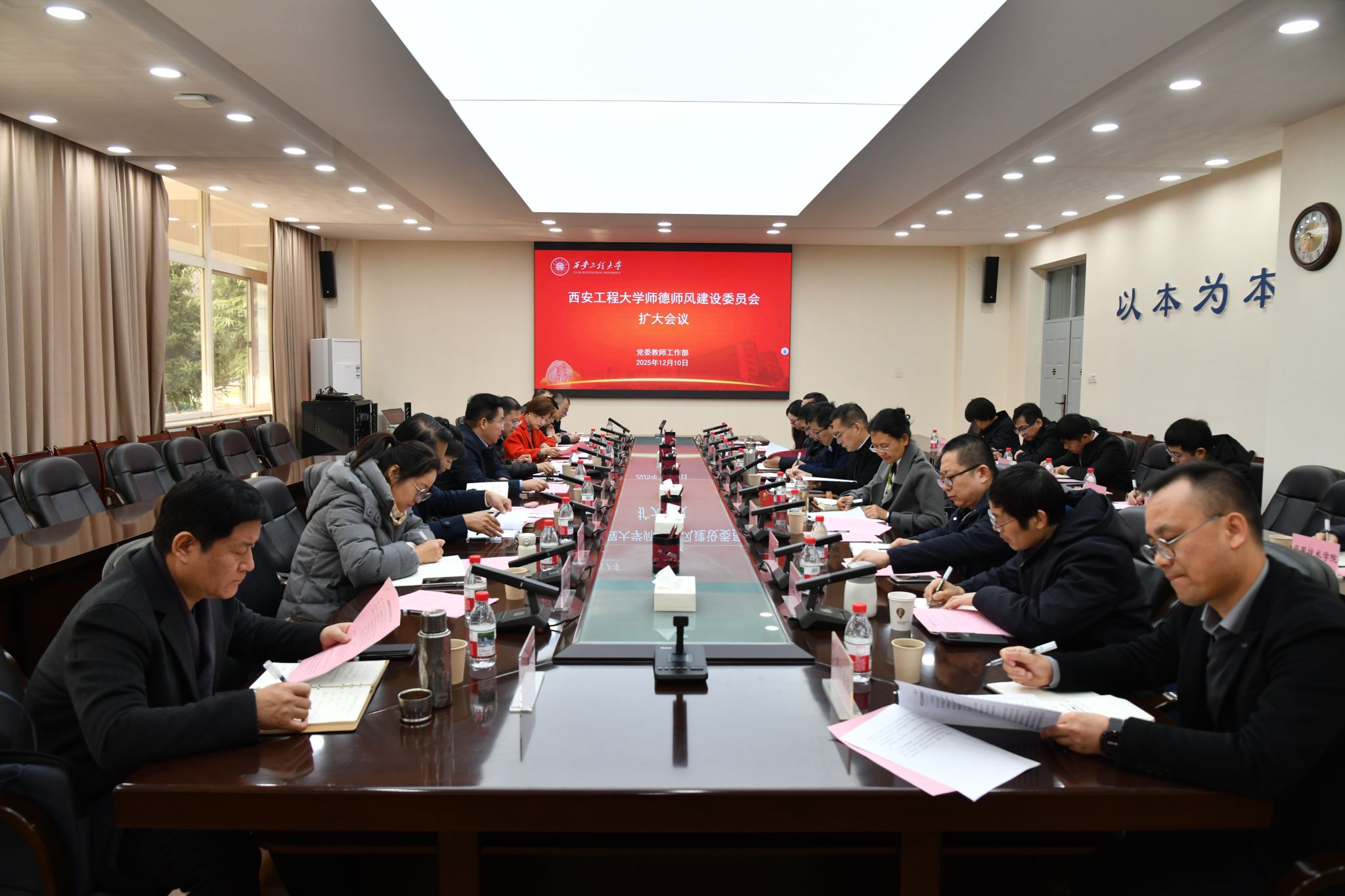党委教师工作部负责人传达了中央教育工作领导小组秘书组印发的《关于健全新时代师德师风建设长效机制的意见》精神,通报了陕西省教育厅相关工作要求。纺织科学与工程学院、环境与化学工程学院负责人代表本单位作交流发言,围绕教师思想政治引领、师德培育涵养、典型选树宣传、失范行为预防与处理等分享了经验做法与工作思考。