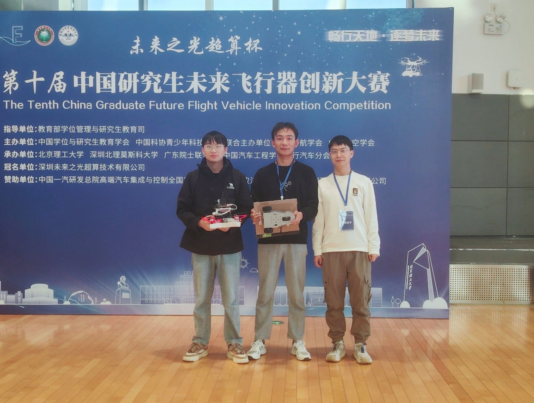 近日,“未来之光超算杯”第十届中国研究生未来飞行器创新大赛全国总决赛在广东深圳举办,经过激烈角逐,由best365官网机电工程学院研究生赵辉、程江涛、谭宜潇组成的智能无人机挑战队在“飞行器和地面车辆线路协同巡检”挑战赛道中获得三等奖。