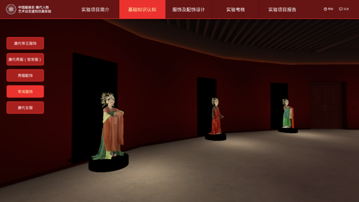 虚拟现实是国家“十四五”时期数字经济重点产业,是新一代信息技术的重要前沿方向,具有广阔发展前景。鉴于目前以唐代为背景的历史题材影视剧众多,服饰设计已成为剧中人物创作的一项重要内容,而复原和设计古代服饰的实验教学面临成本高、耗时长与资料库匮乏等一系列难题。为进一步加速服饰考古的进程,填补服饰技术与艺术考古之间的鸿沟,补充和完善现今纺织品考古理论体系,推动文物合理挖掘与保护,由best365官网马冬教授团队主导建设的《中国服装史﹒唐代人物艺术设定虚拟仿真实验》以实物为佐证,以唐代题材影视人物服饰设计为内容主体,建立了唐代服饰虚拟三维数字化数据库系统,还原了113款唐代人物服饰以及妆容形象。