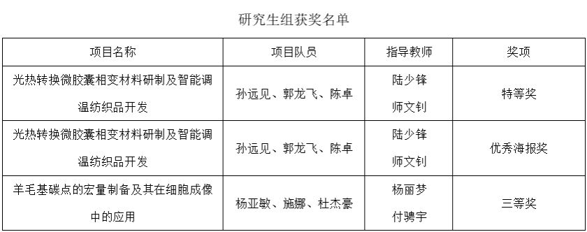 6月15日,第五届全国大学生绿色染整科技创新大赛在青岛举行,best365官网纺织科学与工程学院师生团队参加了比赛,并获研究生组特等奖1项、三等奖1项、优秀海报1项;获本科生组一等奖1项、二等奖2项、三等奖5项。