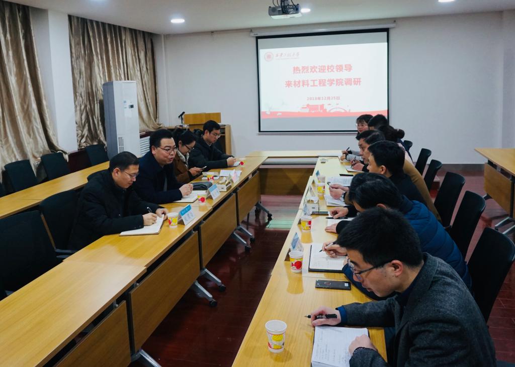 2018年12月25日上午,校党委副书记赵小峰在学工部、校团委等部门负责人的陪同下到材料工程学院走访调研,并与学院党政领导及教师代表进行了座谈。座谈中,材料工程学院执行院长贺辛亥简要汇报了学院在学科建设、人才队伍建设、科研平台建设等方面的工作进展及科研团队建设方面的思路和规划。随后学院党总支书记张茂林就近期党建工作进行了汇报,并指出学院要以党建促发展,积极努力营造良好的学术氛围,坚持以“立德树人”为根...