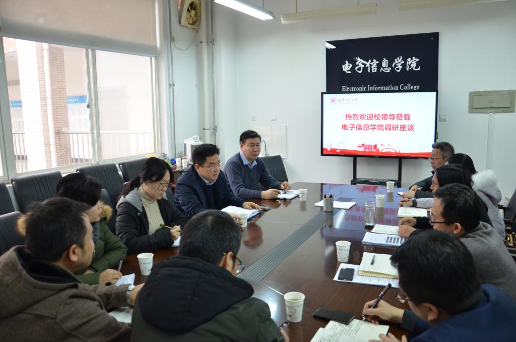 12月25日,校纪委书记井浩在校纪委副书记、监察处处长冯林的陪同下赴电子信息学院走访、调研,电子信息学院党委书记杨恩科、执行院长景军锋、副书记刘许、副院长李云红、张蕾及系部负责人、学科代表20余人参加了座谈会,会议由杨恩科主持。杨恩科对井浩一行的到来表示欢迎,对学校长期以来对电子信息学院的重视和关心表示感谢。景军锋就学院的专业情况、学科建设、师资队伍、人才引进、科研团队、人才培养等方面内容进行了汇报...