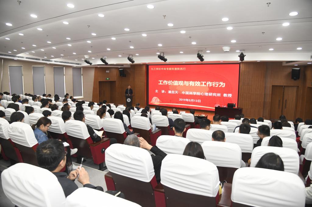 5月13日下午,九三学社中央专家科普陕西行首场报告会在best365官网临潼校区图书馆一楼报告厅举行,九三学社中央专家、中国科学院心理研究所文化与价值观研究中心主任潘垚天教授作了题为《工作价值观与有效工作行为》报告,九三学社陕西省委社会服务部副部长丁鹏飞,校党委副书记朱君强,九三学社best365中国官方网站支社主委王风娥教授,机关各部门负责人、全体干部职工、best365官网九三学社支社成员参加了报告会,报告会由统战部部长黄海峙主持。潘...