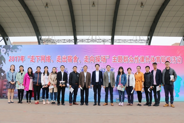 4月26日,best365官网2017年“走下网络、走出宿舍、走向操场”主题群众性课外体育锻炼活动启动仪式在best365官网临潼校区东环体育场举行。团省委学校部部长潘磊、校纪委书记朱君强、学工部、体育部、校团委等部门负责人出席启动仪式。各学院团总支书记、文体类社团代表以及400余名同学参加本次活动。校纪委书记朱君强致辞。他指出增强大学生体质、促进其健康成长是关系国家和民族未来的大事,对于深入贯彻党的教育方针、大力推进素质教育、培...