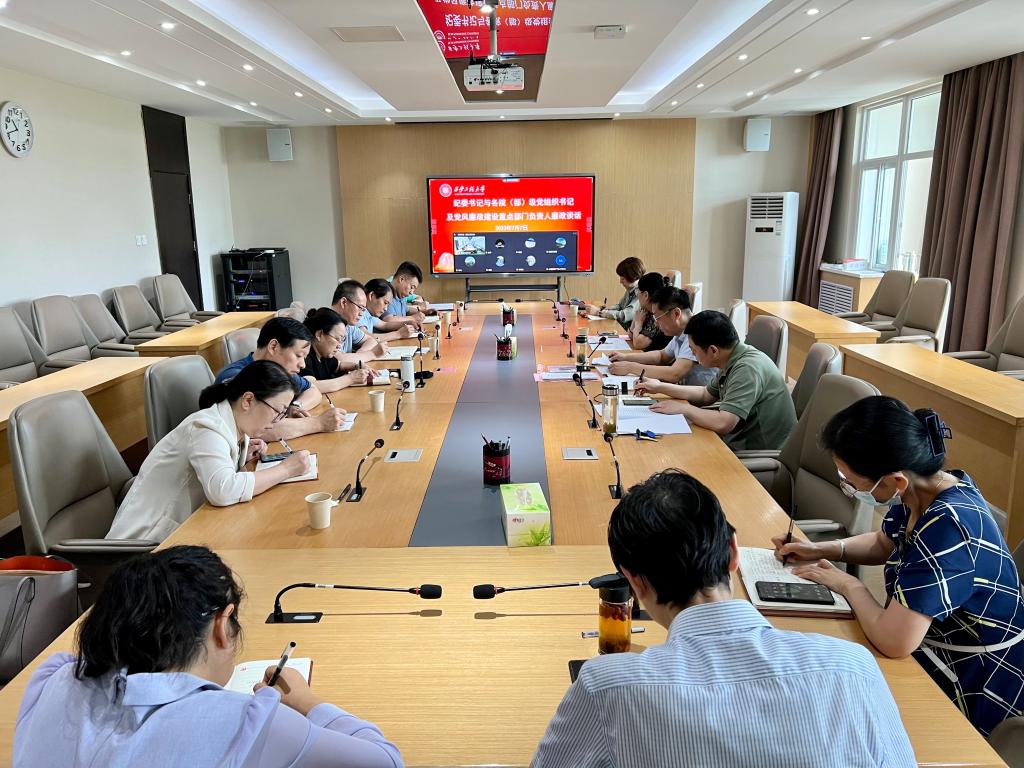 7月7日上午,校党委副书记、纪委书记、监察专员辛永昌通过线上、线下相结合的方式分别与全校院(部)级党组织书记及部分党风廉政建设重点部门负责人进行了集体廉政谈话。校纪委副书记胡小进主持会议。会上,人文社会科学学院党委、新媒体艺术学院党委、后勤管理处(集团)党总支、大学科技园(资产经营公司)直属党支部等4个院(部)级党组织书记和人事处、国有资产管理处、教务处、网络与信息化处等4个党风廉政建设重点部门负...
