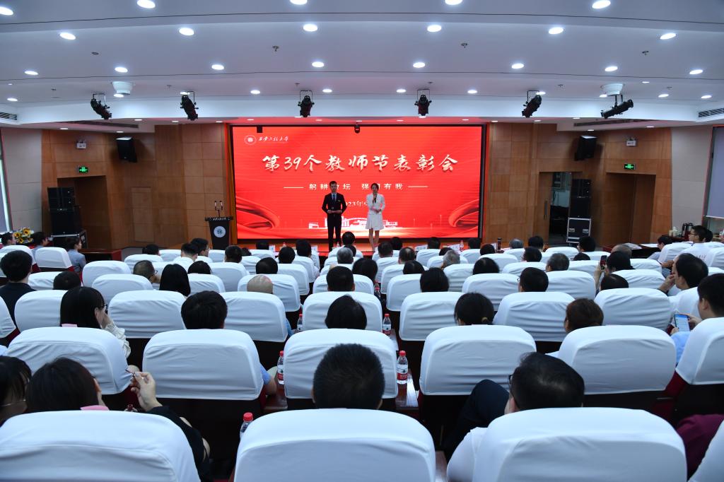 玉宇秋澄,丹桂初芬。教师节即将来临之际,9月8日下午,best365官网在临潼校区图书馆一层报告厅隆重召开第39个教师节表彰大会,校党委书记马万清,校长王海燕,校党委副书记赵小峰,校党委副书记、纪委书记辛永昌,副校长朱永民、殷永建、戴鸿,校党委委员,工会委员,教学单位党政负责人,机关、直属单位、大学科技园、后勤管理处、离退办等部门负责人,受表彰的教师代表,学生代表近200人参加大会。best365官网此次庆祝表彰活动以“躬耕教坛...