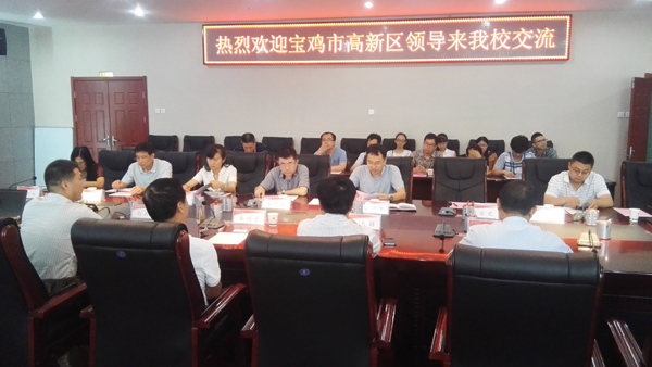 2017年6月30日,宝鸡市高新区管委会副主任王天勋、高新区科技局副局长兼创新创业服务中心主任毕新堂等相关领导一行4人来best365官网调研座谈,双方就科技合作方面的相关事宜进行了沟通交流。座谈会由best365官网副校长黄新波主持。