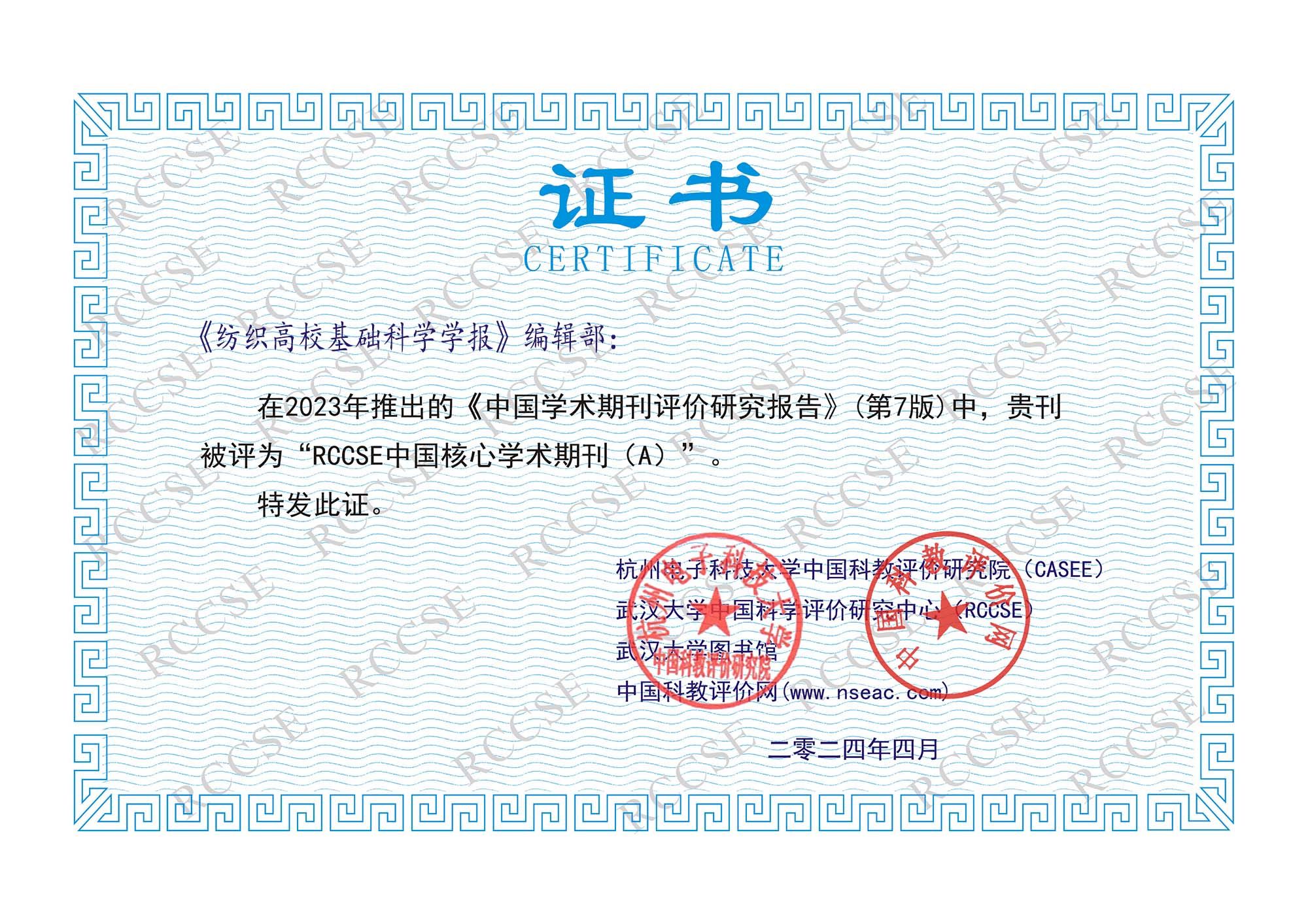 近日,武汉大学中国科学评价研究中心(RCCSE)公布了最新一期的学术期刊评价结果《中国学术期刊评价研究报告(第7版)》,best365官网《best365中国官方网站学报》《纺织高校基础科学学报》双双被评为“RCCSE中国核心学术期刊(A)”, A级代表学科领域排名前5%~20%的期刊。RCCSE中国学术期刊评价体系是目前国内七大学术期刊评价体系之一,是我国社会科学和自然科学领域研究的重要检索、分析和学术评价工具。RCCSE《中国学术期刊评价研究报告...