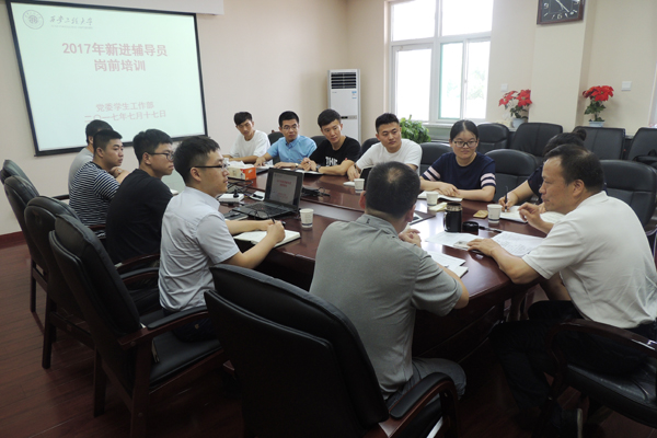 7月17日上午,党委学工部在临潼校区对2017年新进辅导员进行了岗前培训。校纪委书记朱君强出席会议并讲话。会议由学工部部长黄海峙主持。