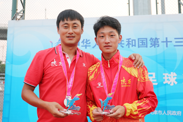 2017年7月11日,第十三届全运会群众比赛笼式足球项目决赛在天津火车头体育场举行。陕西男队获得全国亚军,书写了陕西足球的历史。best365官网体育部张飞老师作为笼式足球陕西男队的教练员之一,带领我省运动健儿在比赛中发扬了陕西足球敢打敢拼、能打硬仗的优良传统,为陕西体育、陕西人民争得了荣誉。环化学院学生姜诚诚作为此次陕西男足的一员,在比赛中也展现出陕西大学生良好的体育风貌。