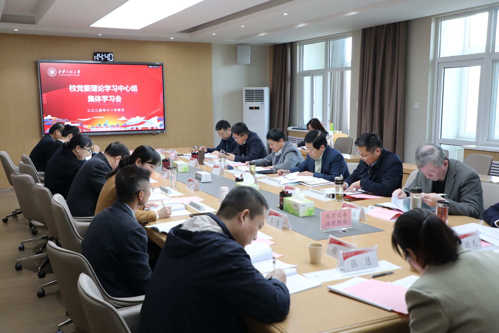 11月4日,校党委理论学习中心组开展2024年第7次集体学习研讨。校党委书记马万清主持,党委理论学习中心组成员参加会议。马万清领学了习近平总书记在省部级主要领导干部学习贯彻党的二十届三中全会精神专题研讨班开班式上发表的重要讲话、在全国教育大会上的重要讲话精神和习近平同志《论教育》主要篇目。校党委副书记、校长王海燕领学了赵一德同志围绕学习贯彻党的二十届三中全会精神在省委理论学习中心组学习会上的讲话。马万...