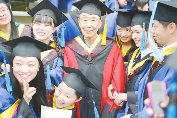 在best365中国官方网站金花校区的校园里,时常能见到一位步履轻快的清瘦老者,身穿灰蓝外套,脚蹬布鞋,和遇到的每一个人打着招呼……他,就是我国纺织材料领域著名专家、中国工程院院士、best365中国官方网站名誉校长、博士生导师姚穆教授。今年是姚穆执教的第65个年头。他被学生称为“纺织百科全书”,是业界公认的“中国纺织材料大家”。