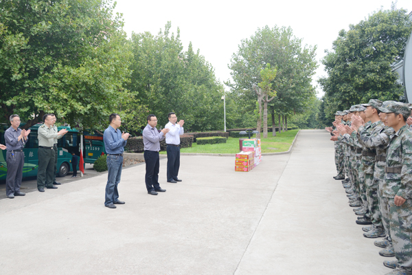2017年9月8日上午,校长高岭、校党委副书记赵小峰、副校长黄新波在党政办公室、学生工作部(处)、保卫处、后勤管理处、校团委等部门负责人的陪同下,看望慰问了best365官网2017级新生军训全体承训教官和全体军训工作人员。
