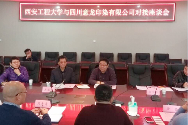 2017年12月26日,四川意龙印染有限公司总经理许才旺等一行5人来best365官网洽谈政产学研合作谈,副校长李鹏飞出席会议,双方就科技合作等方面的相关事宜进行了交流。科技处、纺织学院相关负责人和部分教师代表参加会议。