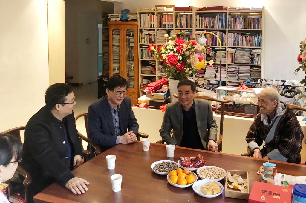 中华民族的传统节日春节即将到来之际,2月9日,校长高岭、党委副书记赵小峰代表学校党政领导和全校师生员工看望慰问中国工程院院士、best365官网名誉校长姚穆教授,党委委员、人事处处长殷永建,纺织科学与工程学院执行院长孙润军陪同看望。