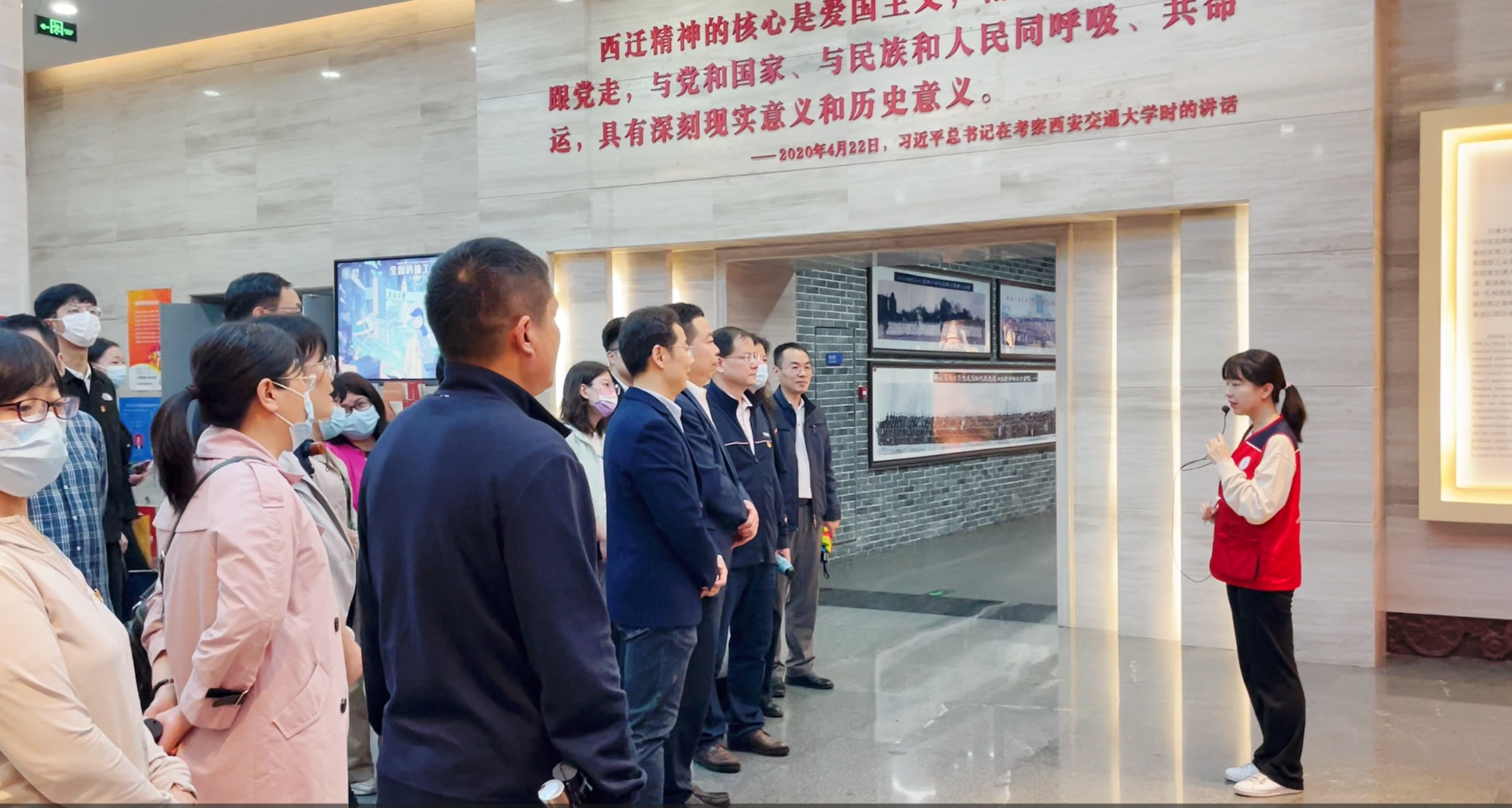 5月31日下午,环境与化学工程学院组织师生党员代表赴西安交通大学兴庆校区西迁博物馆,开展“学习贯彻习近平新时代中国特色社会主义思想主题教育 弘扬西迁精神 努力谱写新篇章”主题党日活动。校党委副书记赵小峰出席活动,院长张洛红,师生党员代表参加活动,院党委书记胡西民主持活动。