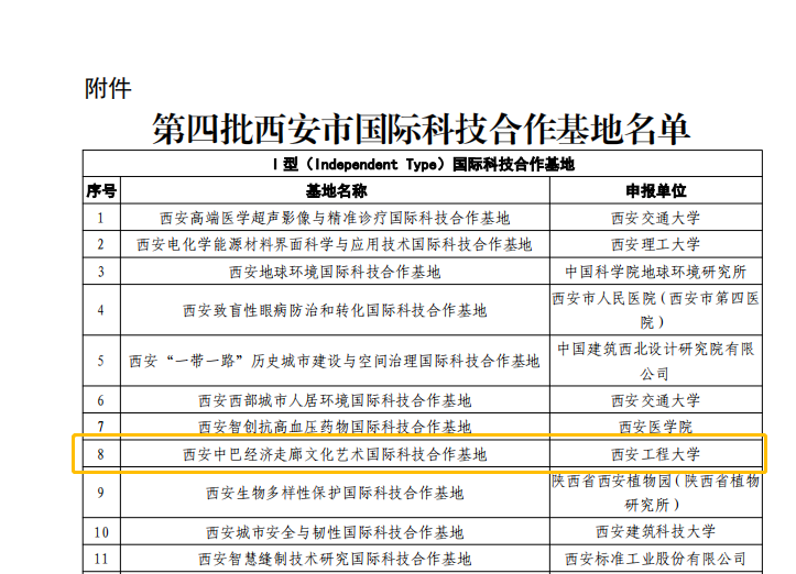 日前,西安市科学技术局(外国专家局)公布了第四批西安市国际科技合作基地认定名单,best365官网成功获批“西安中巴经济走廊文化艺术国际科技合作基地”。