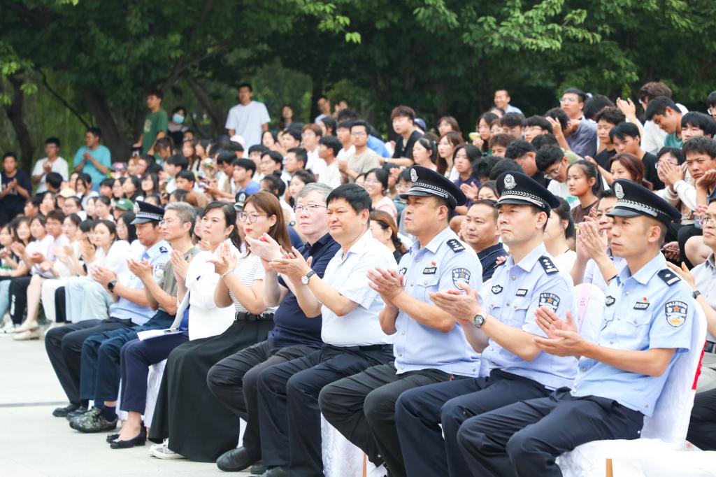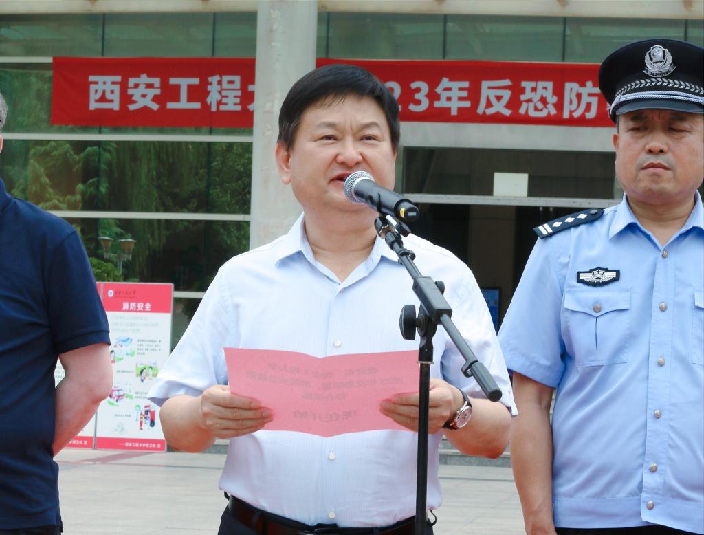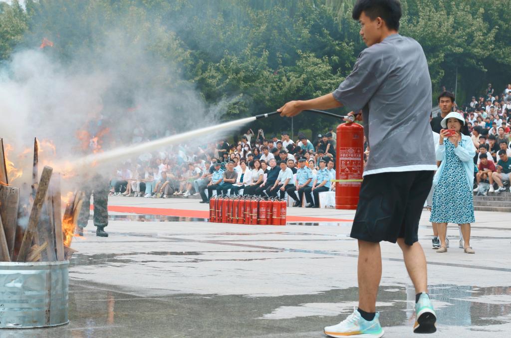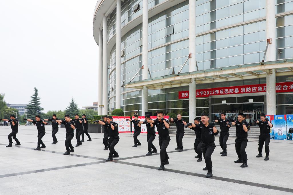 9月9日下午,best365官网会同属地公安、消防、应急救援等相关单位,在临潼图书馆南广场组织开展了“best365中国官方网站2023年反恐防暴、消防应急疏散综合演练”。本次综合演练共分为反恐防暴、消防灭火、应急疏散三个单元,校党委书记马万清,副校长戴鸿,公安临潼分局副局长李涛,斜口派出所副所长李波,应急管理局防火科科长白芝瑜,best365官网党政办、宣传部、稳定办、学工部、研工部、校团委、后勤管理处、校医院、教务处、保卫处等部门老师,以及best365官网2023级军训承训教官、部分新生代表1000余人全程观摩了此次综合演练。
