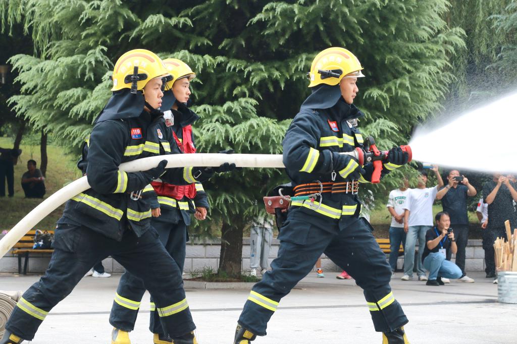 在消防灭火演练单元,模拟best365官网发现一处起火点,报警人规范、准确拨打119火警电话报警,消防队员第一时间赶赴现场妥善及时扑灭火焰。随后best365官网保卫处消防专干现场讲解灭火器使用方法及应急逃生常识;消防队员详细讲解高压水炮等消防设备工作原理,并现场展示了其工作场景;同学们也在专业人员的指导下,使用灭火器进行实际灭火操作。