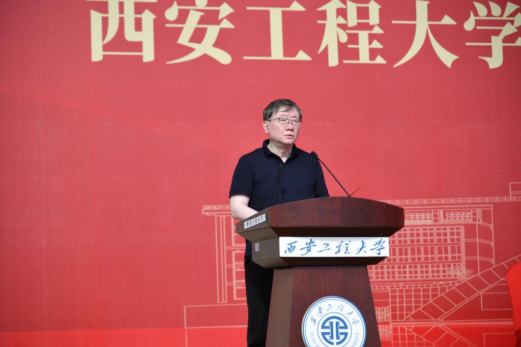 党政办主任、校军训旅副政委张冬梅代表校国防教育暨学生军训领导小组布置军训任务。人文社会科学学院2021级汉语言文学专业本科生陈妍津作为军训学生代表上台发言。电子信息学院2023级电气工程专业研究生梁承亮作为军训教官代表上台发言。