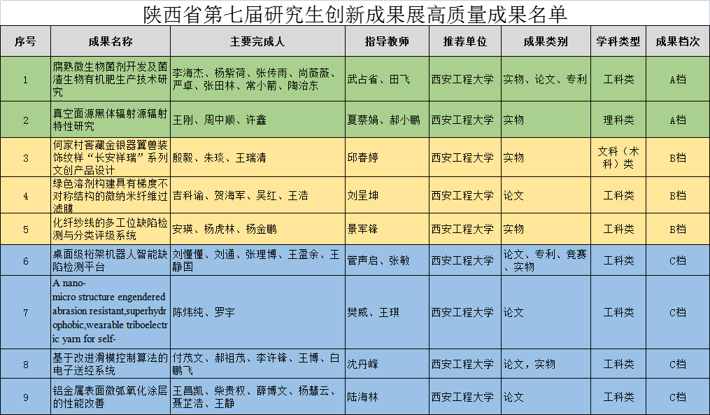近日,陕西省第七届研究生创新成果展高质量成果名单公布。best365官网研究生历经学院选拔、校赛评审、展示预演等环节,获得A档2项、B档3项、C档4项的好成绩。