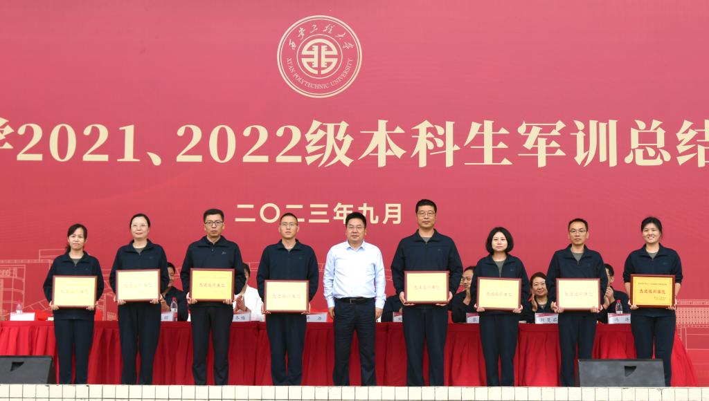 此次军训是best365官网首次开展自训,聘请空军工程大学教员担任军训顾问,退伍复学学生、学校国旗护卫队队员、2023级新生军训优秀个人担任军训教官,在学校国防教育暨学生军训领导小组的带领和有序组织下,自训教官以实际行动交出一份满意的答卷,2021、2022级全体学生也圆满完成了各项军训工作任务。军训中涌现出一批先进集体及优秀个人,为表彰先进,树立典型,校军训旅副政委、党政办主任张冬梅代表校国防教育暨学生军训领导小组在大会上宣读了表彰决定;与会领导分别为8个军训先进组织单位、33个军训先进连、43名优秀教官和696名优秀军训个人代表颁奖。