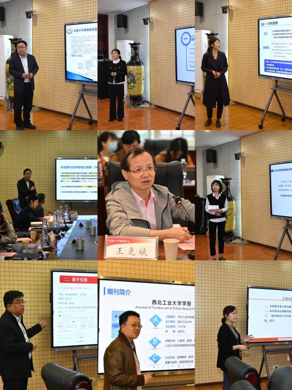 在学术报告环节,东华大学期刊中心主任王克斌、西安建筑科技大学学报编辑部主任闫增峰、西安交通大学期刊中心编辑亢列梅、西安科技大学期刊中心副主任李彩虹、浙江理工大学杂志社副社长徐石勇、西北大学学报编辑部编辑李静、长安大学学术期刊管理中心副主任韩跃杰、陕西师范大学学报常务副主编程琴娟、西北工业大学学报编辑部主任武晓耕等9位专家学者围绕期刊出版服务能力建设分别从人才培养、学科建设、影响力提升、服务地方经济、国际传播、媒体融合、出版能力等方面进行交流研讨。在自由讨论环节,期刊社、编辑部结合各自学报办刊模式,围绕如何提升期刊的服务能力和学术影响力分享了办刊经验。