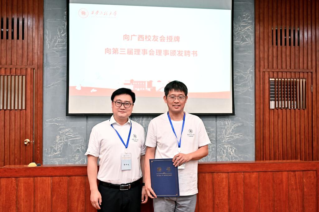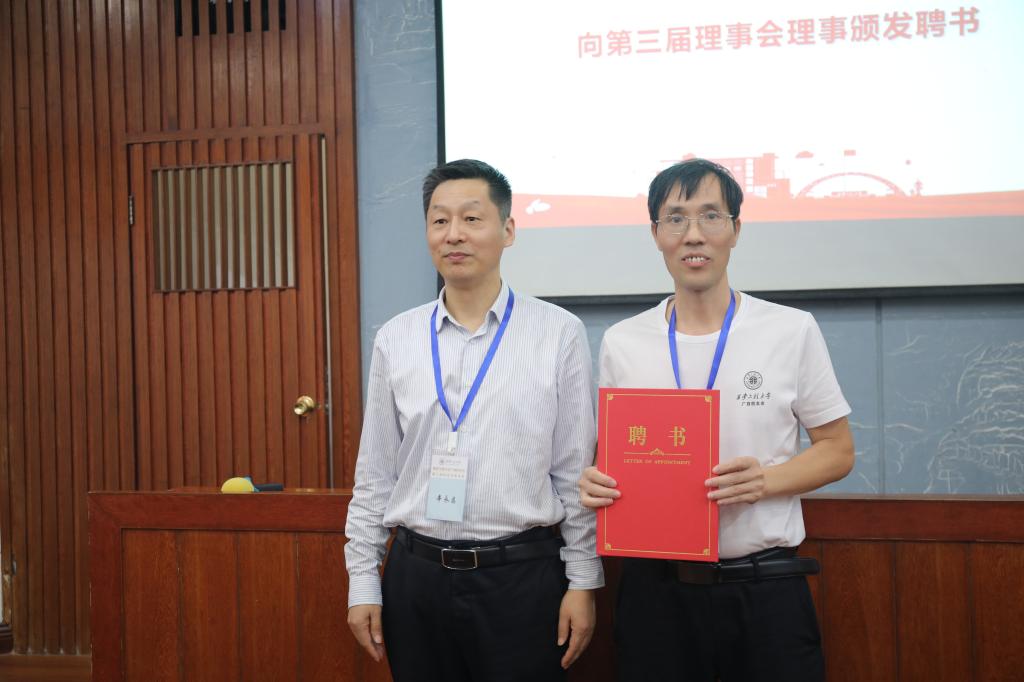 广西校友会第二届理事会会长、毛织78级校友谭立平向大会作了工作报告,郭可义宣读了《关于同意best365中国官方网站广西校友会理事会换届的批复》文件,会议选举了广西校友会第三届理事会领导班子成员,best365官网空调96级校友(桂林电子科技大学机电学院教授、博士生导师)梁才航当选第三届广西校友会会长并作表态发言,谭立平向梁才航移交了广西校友会会旗,辛永昌向新一届理事会顾问及会长、副会长等颁发了聘书,郭可义向秘书长、副秘书长颁发了聘书。