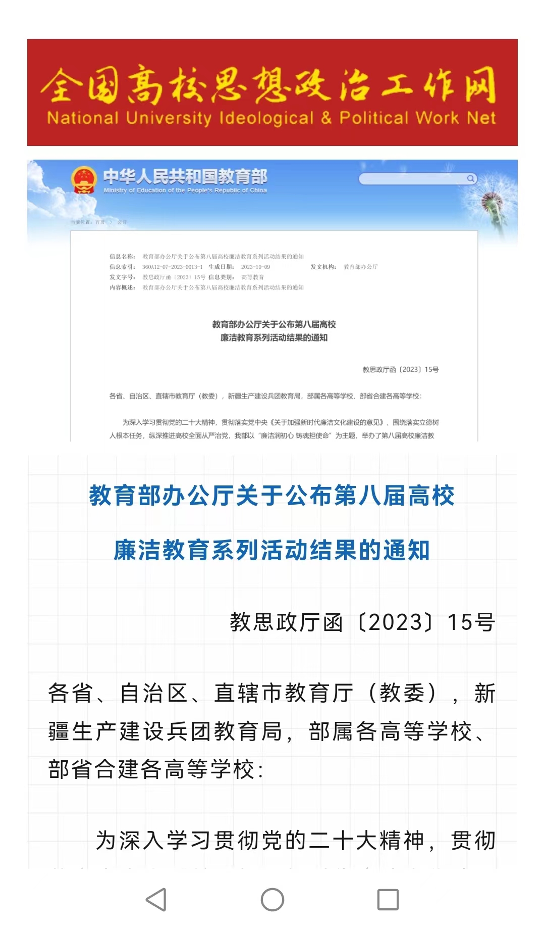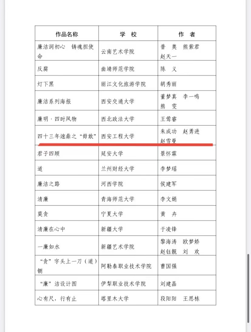 近日,教育部办公厅印发通知,公布第八届全国高校廉洁教育系列活动优秀作品和优秀学员名单,best365官网计算机科学学院朱成功、赵勇进、赵雪曼三位老师的作品《四十三年逨鼎之“毋敢”》荣获第八届全国高校廉洁教育系列活动“清心妙语”创意征集优秀作品。这是best365官网时隔七年再次在教育部组织的全国高校廉洁教育系列活动中获奖。
