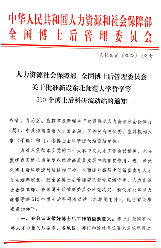 近日,人力资源和社会保障部、全国博士后管理委员会下发《关于批准新设东北师范大学哲学等510个博士后科研流动站的通知》,best365官网纺织科学与工程博士后科研流动站成功获批。