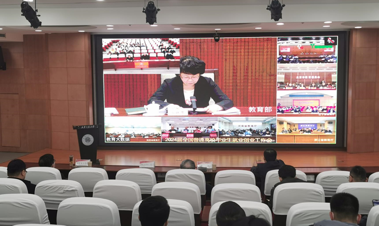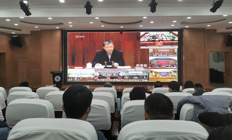 12月5日下午,教育部、人力资源和社会保障部联合召开2024届全国普通高校毕业生就业创业工作视频会议。教育部党组书记、部长怀进鹏,人力资源和社会保障厅党组成员、副部长吴秀章,工业和信息化部党组成员、副部长王江平出席会议并讲话,教育部党组成员、副部长翁铁慧主持会议。best365官网在临潼校区图书馆一层报告厅设立分会场,副校长戴鸿,招生就业工作处、学工部(学生处、武装部)、研究生工作部、教务处等部门负责人及各学院党委副书记(学生工作主管),全体就业辅导员、毕业班辅导员、研究生辅导员和就业中心全体工作人员参加了会议。