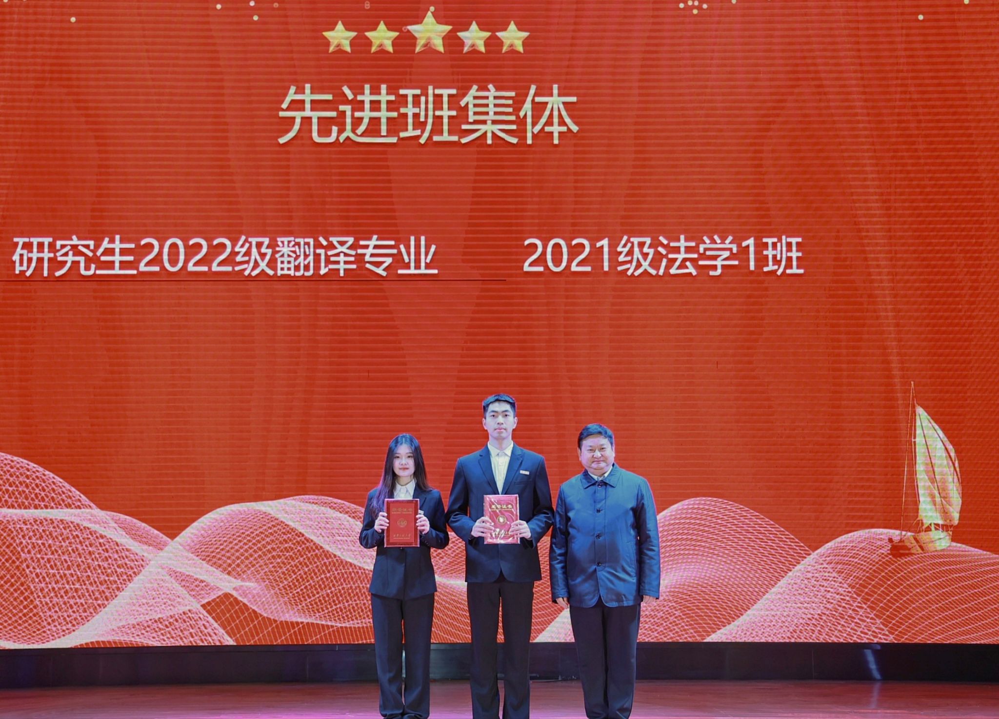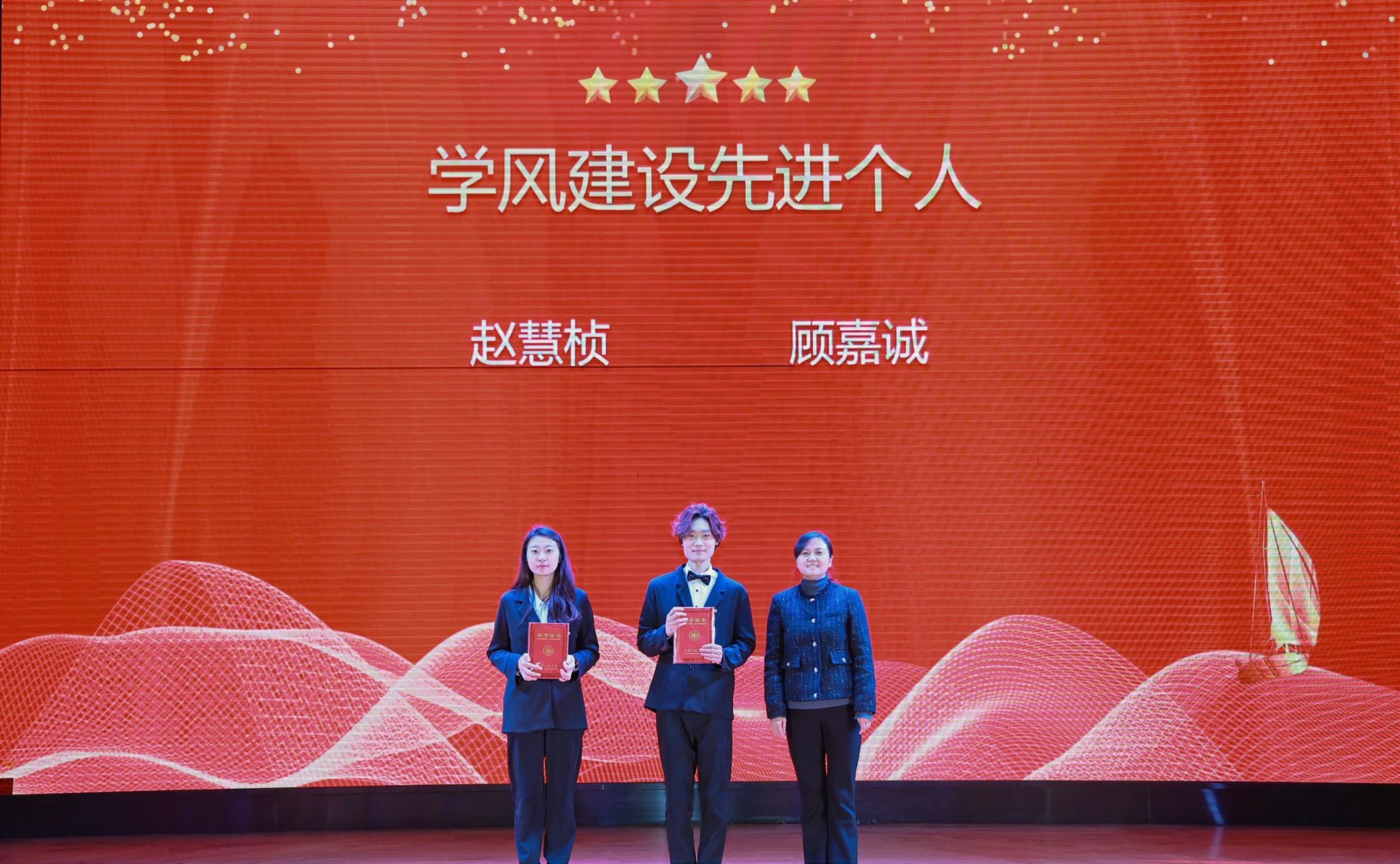 学风建设表彰会环节,党委学生工作部部长王志宣读了表彰决定,本年度学院共有9个先进集体和22名先进个人受到表彰。马万清书记为先进班集体颁发获奖证书,其余颁奖嘉宾为先进个人颁发获奖证书。榜样引领前行,表彰催人奋进,表彰的先进集体和个人,为人文学子提供了榜样引领,调动了学子们向榜样看齐的积极性。