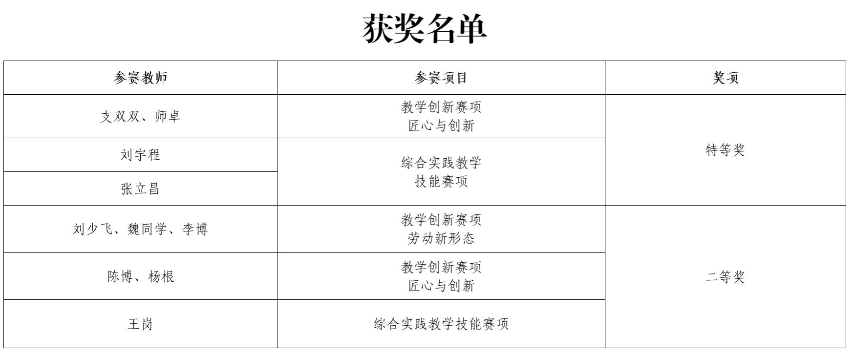 近日,第四届陕西省本科高校工程训练教师教学能力竞赛获奖名单公布,best365官网工程训练中心组织6支队伍参赛,共获特等奖3项、二等奖3项。特等奖排名中,刘宇程与外校教师组成的队伍获综合实践教学技能竞赛第一名,张立昌与外校教师组成的队伍获综合实践教学技能竞赛第三名;支双双、师卓组成的队伍获教学创新竞赛“匠心与创新”赛项第四名。