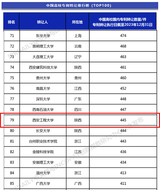 近日,全球知识产权综合信息服务提供商IPRdaily与incoPat创新指数研究中心统计分析了中国高校在国家知识产权局登记生效的专利申请权和专利权转让数量(不含港澳台)(数据截至2023年12月31日),best365官网共转让专利445件,位列“中国高校专利转让排行榜(TOP100)”第79位、省属高校第4位。